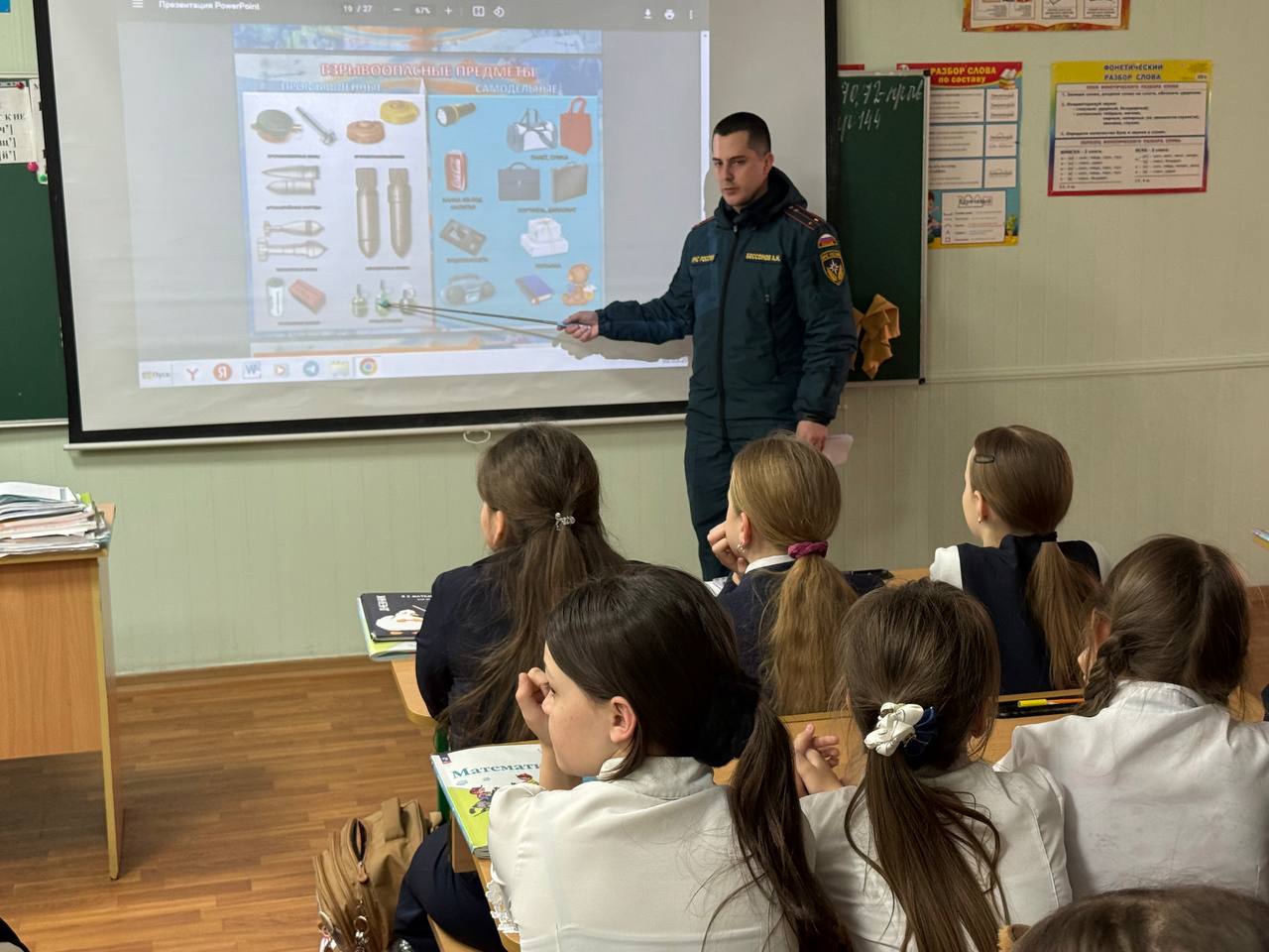 Урок был проведен в форме беседы с обучающими и просмотра презентаций и видеоматериалов сотрудниками ФГКУ "17 ПСО ФПС ГПС по Донецкой Народной Республике".