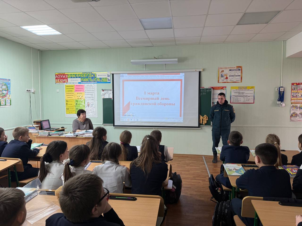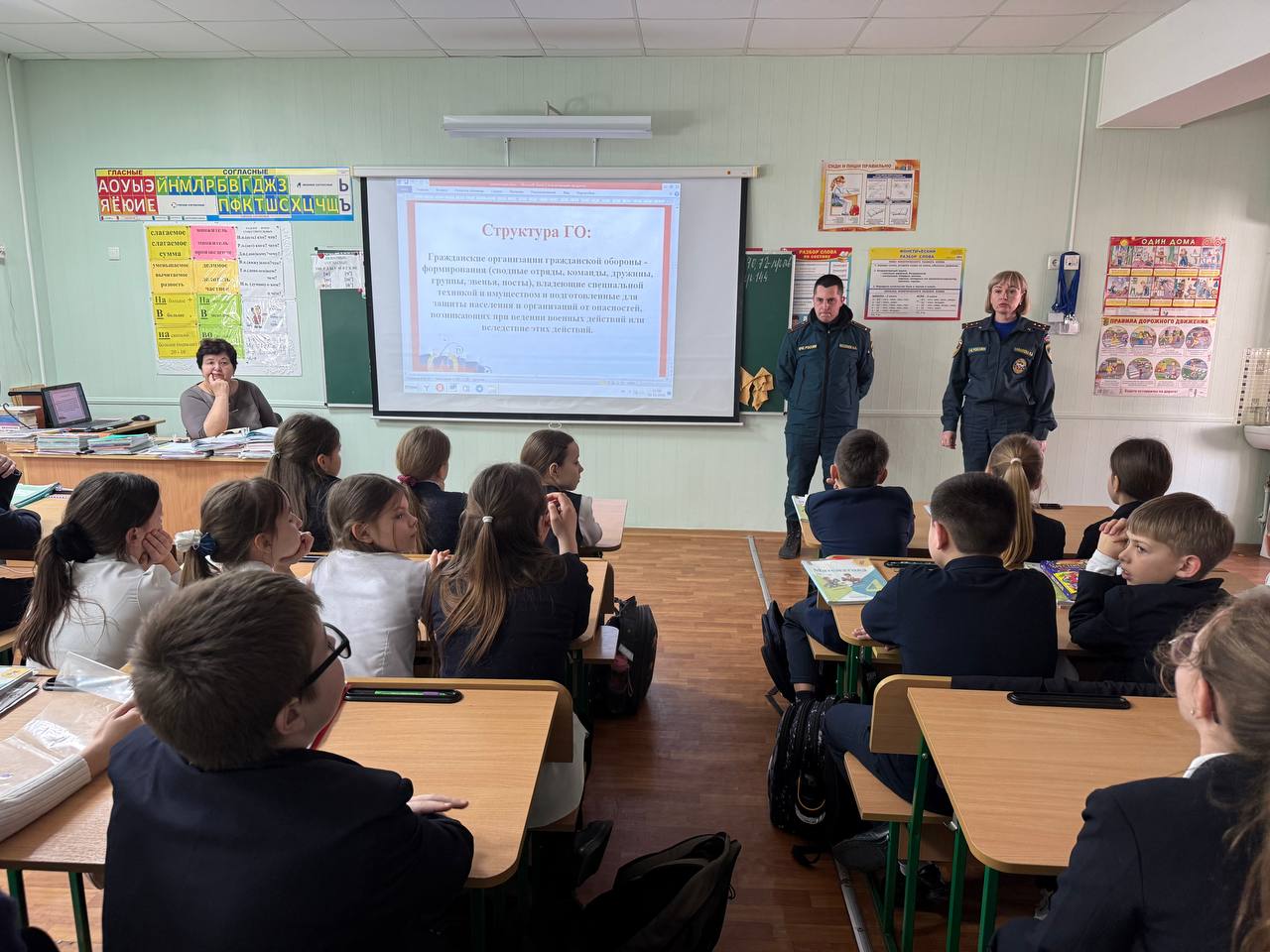 На уроке обучающиеся познакомились с функциями и задачами Гражданской обороны, повторили сигналы ГО, узнали о действиях в экстренных ситуациях и важности личной безопасности. Ребята узнали, что гражданская оборона – это система мероприятий по подготовке к защите и по защите населения, материальных и культурных ценностей на территории Российской Федерации от опасностей, возникающих при ведении военных действий или вследствие этих действий, а также при возникновении ЧС природного и техногенного характера. Гражданская оборона является одной из важнейших функций государства, составной частью оборонного строительства и обеспечения безопасности населения страны. В ходе урока были рассмотрены различные опасности, которые могут угрожать жизни и здоровью людей в повседневной жизни, такие как стихийные бедствия, техногенные катастрофы и другие нештатные ситуации. Были рассмотрены такие вопросы, как пожарная безопасность, правила поведения с незнакомыми людьми, антитеррористическая безопасность, безопасность в интернете, на дороге и водных объектах.