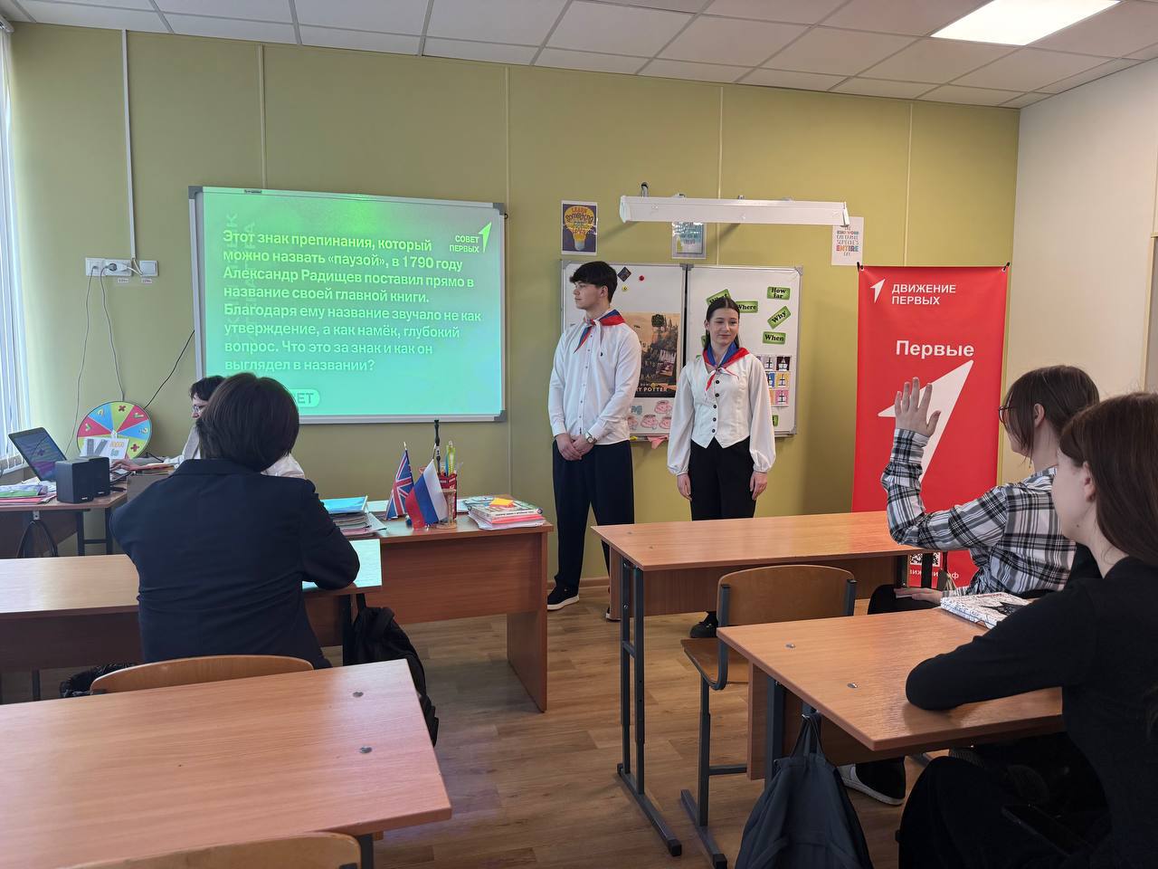 В этот день наши активисты первичного отделения Движения Первых примерили на себя особую роль — роль юных наставников. Ребята сами организовали и провели интеллектуальную игру по школьным предметам для учеников 11 класса.