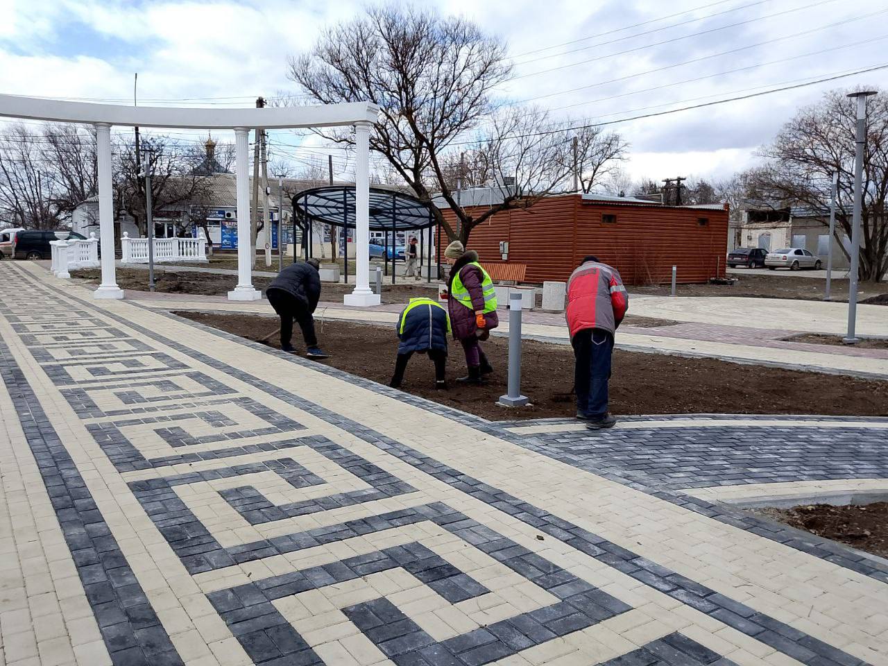 Мангуш — подготовка клумб под высадку деревьев на территории нового сквера; уборка детских площадок по ул. Кирова, ул. Калинина и на Центральной аллее; сбор мусора.