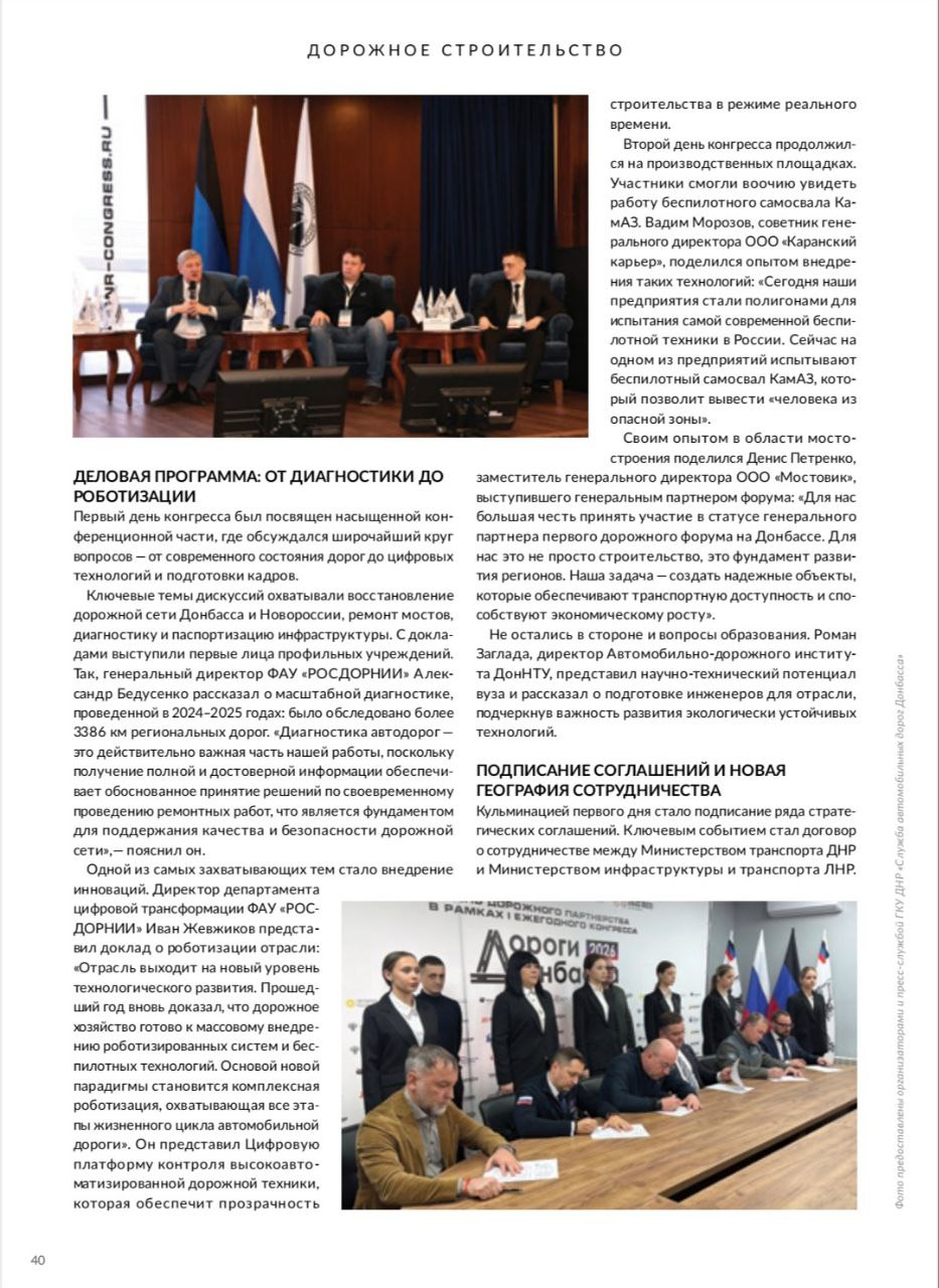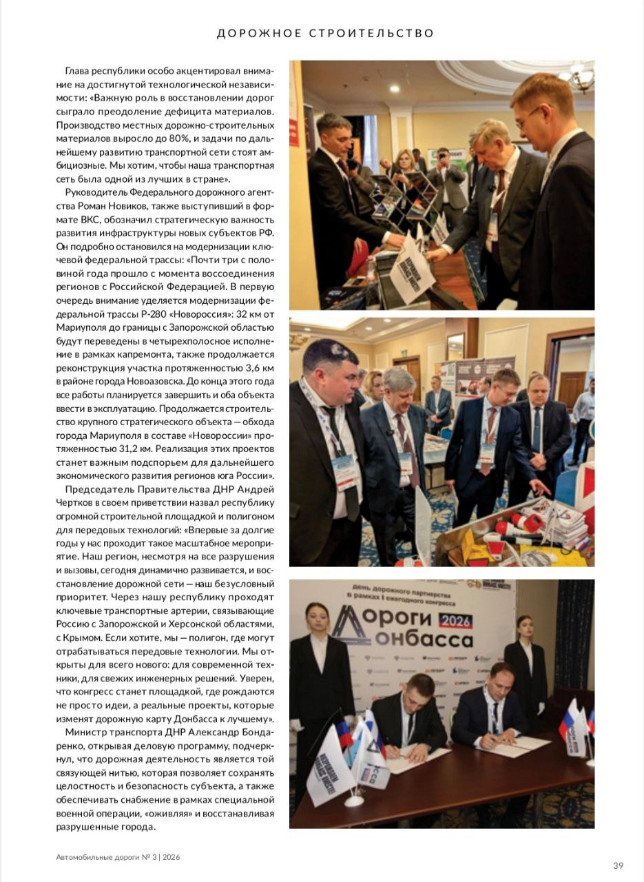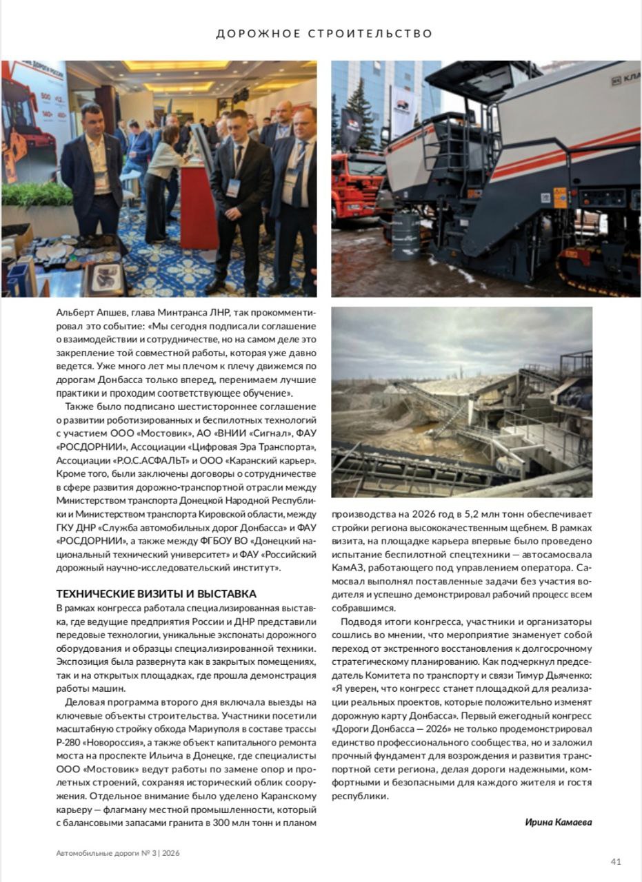 В очередном выпуске журнала "Автомобильные дороги" - об итогах Первого ежегодного конгресса "Дороги Донбасса-2026"