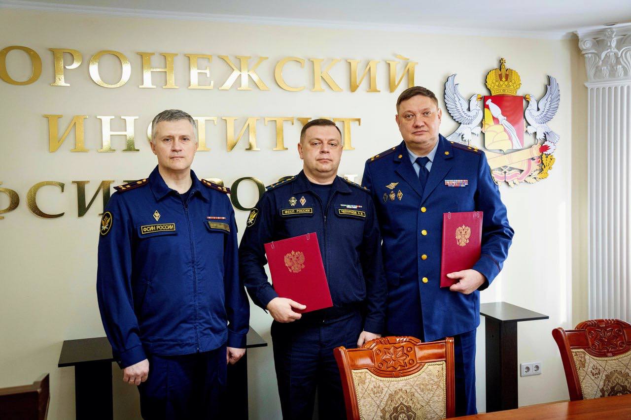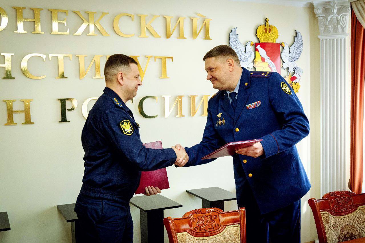 Начальник Воронежского института ФСИН России полковник внутренней службы Владимир Злобин и председатель Орловской региональной поисковой общественной организации «Отечество» – заместитель начальника отделения–заместитель старшего судебного пристава отделения оперативного дежурства УФССП России по Орловской области капитан внутренней службы Александр Чепурнов подписали соглашение о сотрудничестве.