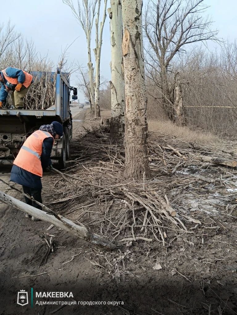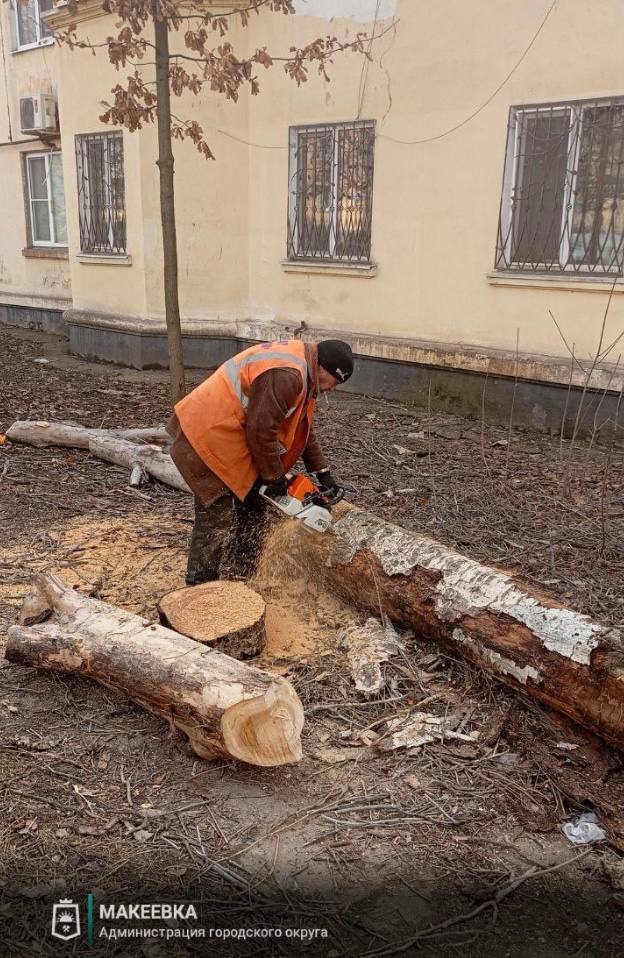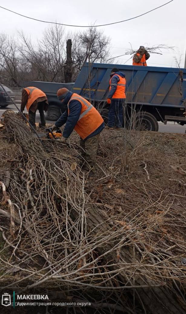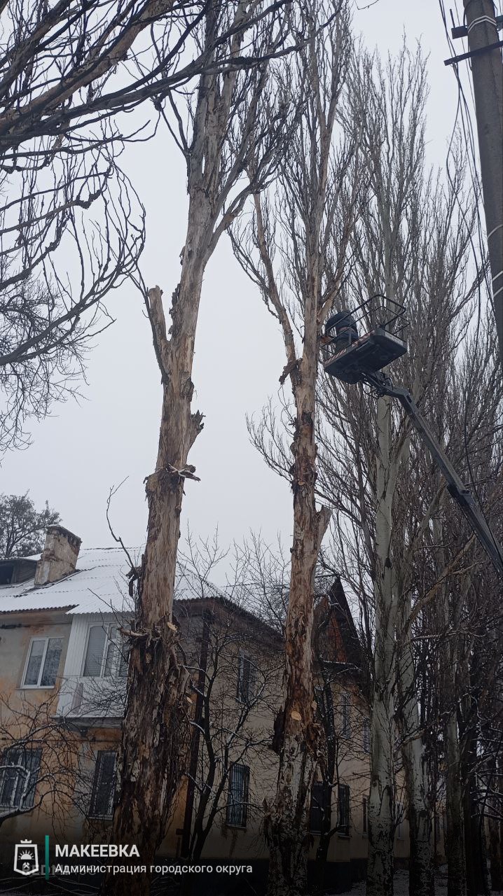 В Макеевке продолжаются работы по спилу аварийных деревьев