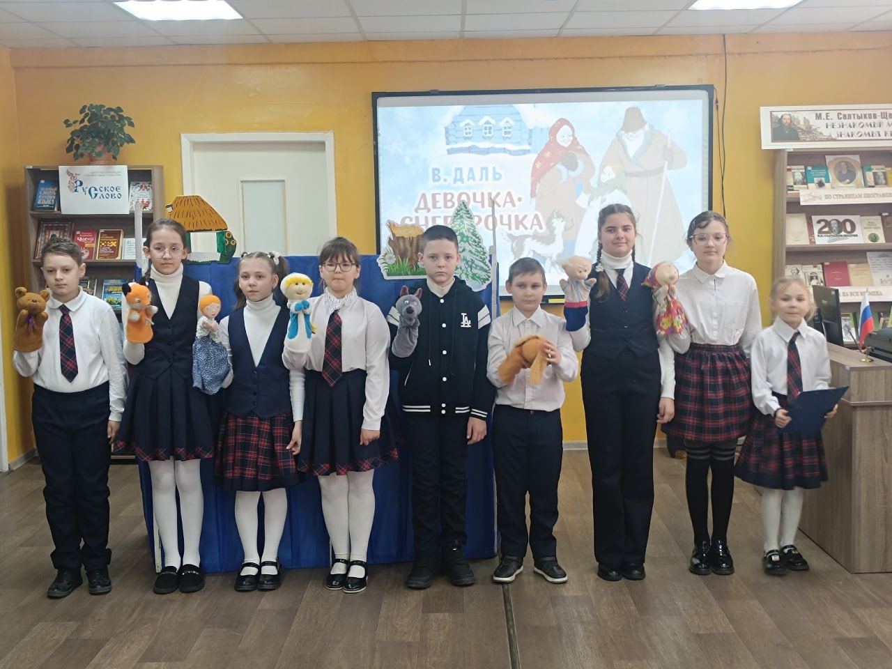 Кульминацией праздника стало выступление кукольного кружка «Волшебный мир игрушки» с постановкой сказки В. Даля «Девочка Снегурочка».