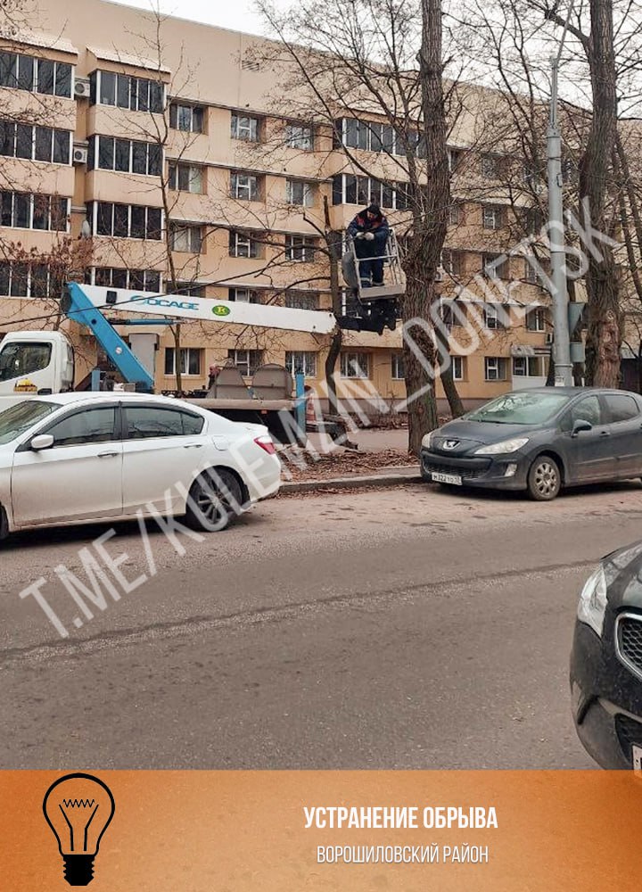 Специалисты предприятия «Донецкгорсвет» ежедневно проводят комплексное техническое обслуживание электросетей во всех районах Донецка.