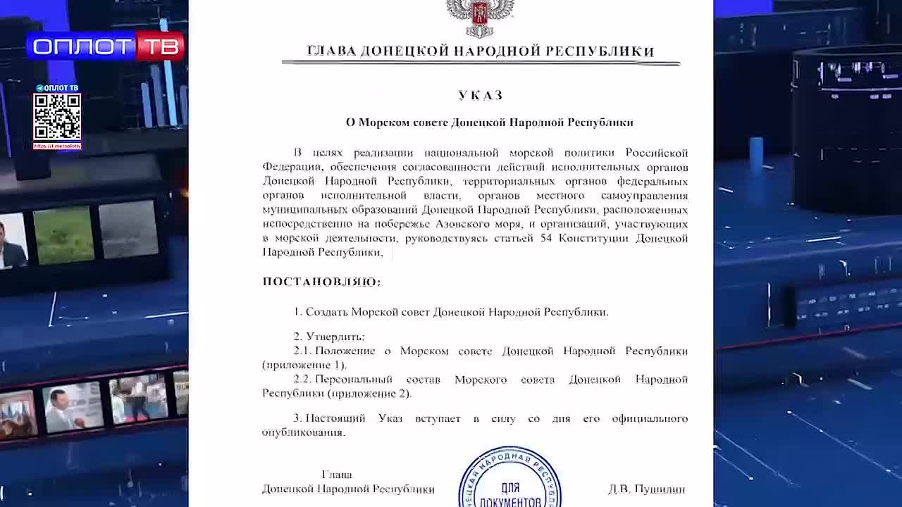 Указ о создании подписал сегодня Глава ДНР Денис Пушилин. Совет будет координировать деятельность федеральных, республиканских и муниципальных властей, а также организаций, занимающихся морской деятельностью.