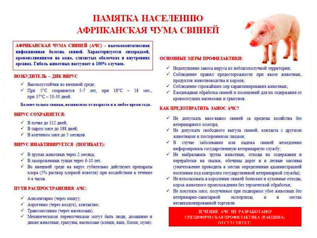 Памятка населению: Африканская чума свиней