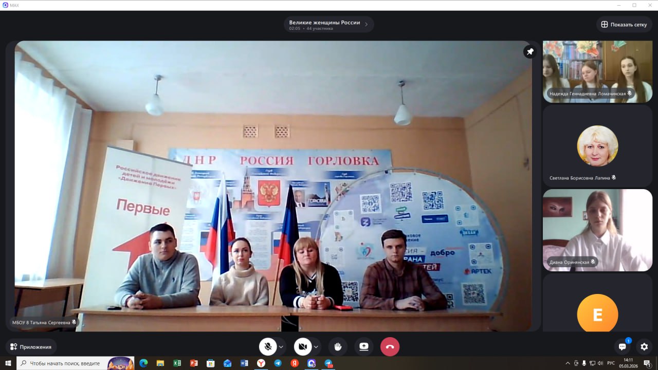 В преддверии Международного женского дня в рамках проекта «Мир возможностей» в одной из школ прошла встреча «Истории великих женщин России». Мероприятие было посвящено соотечественницам, чьи достижения сыграли важную роль в судьбе страны.