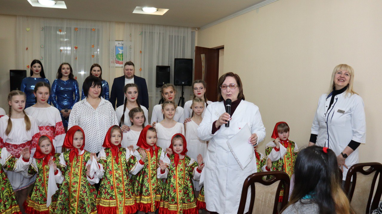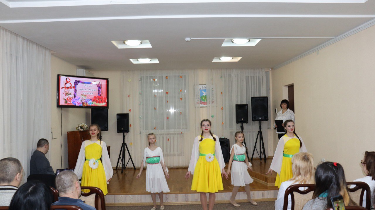 И уже сегодня творческие коллективы Дворца культуры ЯКХЗ: Мастерская танца "Воздух", студия физического развития "Лучики" в содружестве с вокальной группой "Ре-ми" поздравляли милых, очаровательных женщин -сотрудниц и потребителей психологической помощи в Психиатрической больнице г. Макеевки.