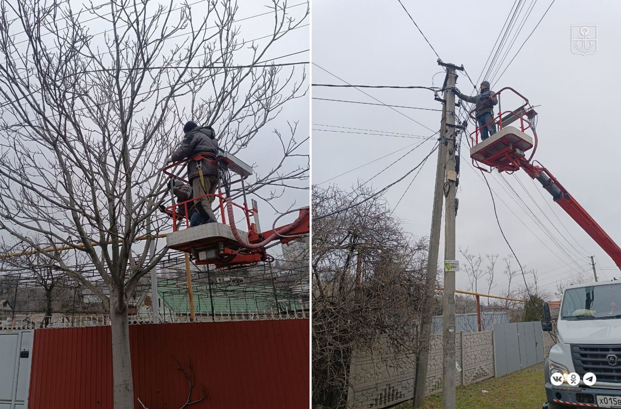 На улице Лозовой энергетики освободили 150 метров сетей наружного освещения от вросших аварийно-опасных веток.