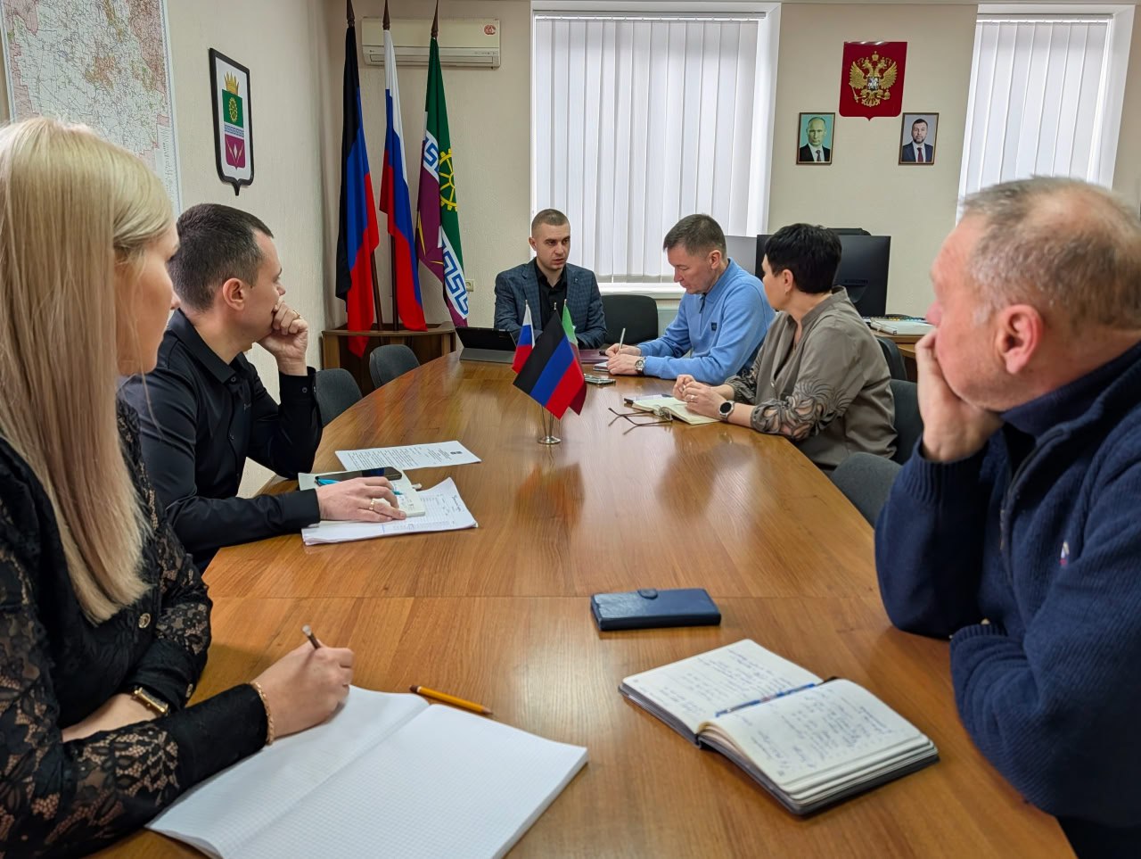 Врип главы муниципального образования Старобешевский муниципальный округ Алексей Черкашин провел оперативное совещание по текущим вопросам. Присутствующие обсудили ситуацию в округе, доложили о выполнении данных ранее поручений, определили первостепенные задачи на сегодня, Алексей Романович дал соответствующие поручения.