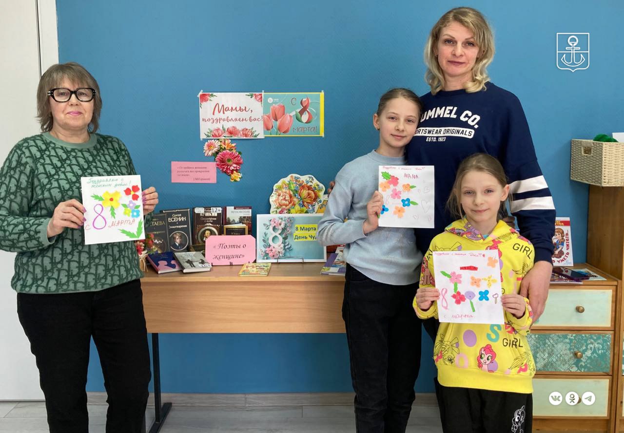 На мастер-классе «В марте есть такой денёк» в библиотеке им. А.С. Пушкина дети с любовью и теплотой вырезали из бумаги, клеили и рисовали уникальные поздравления для своих самых близких людей.