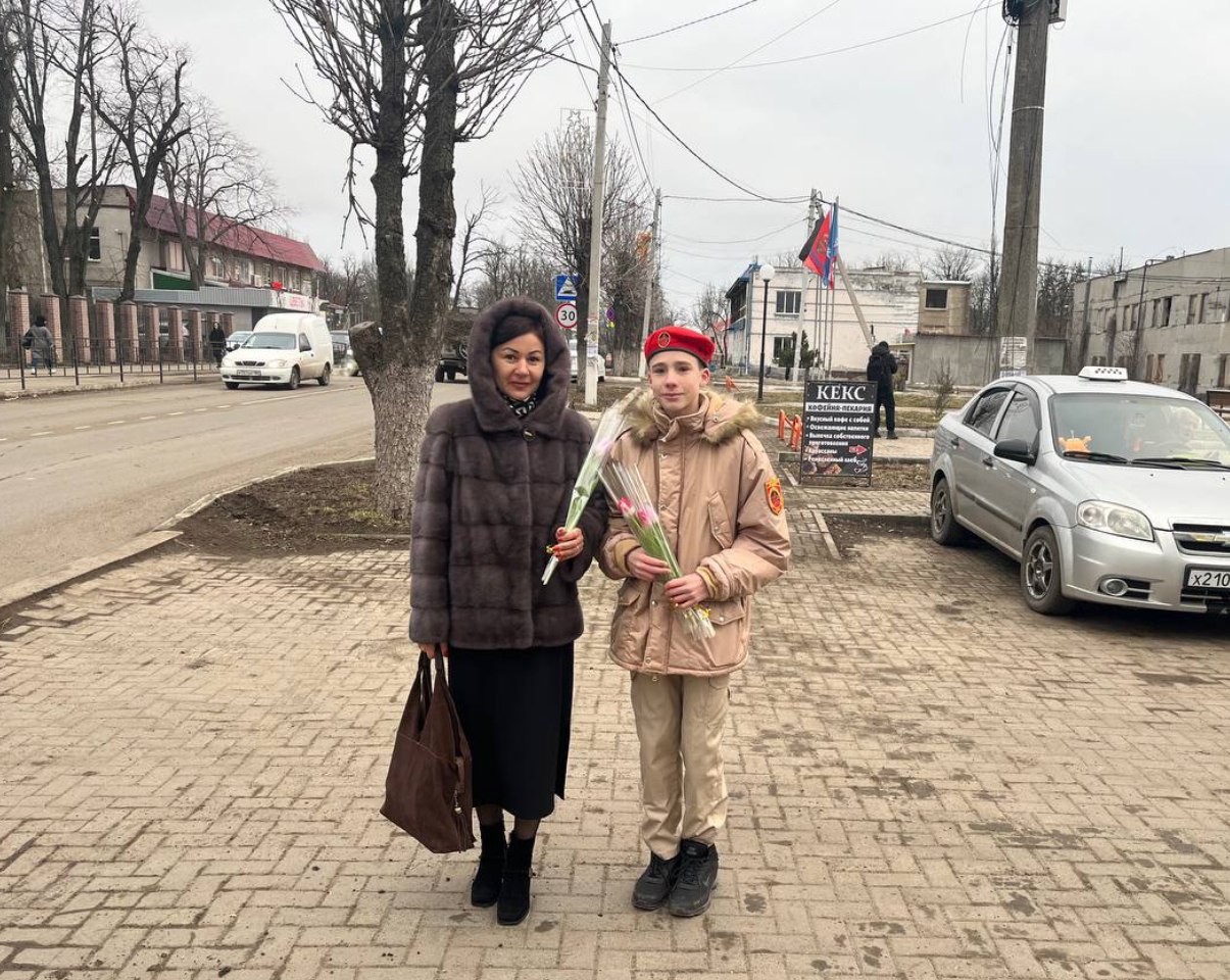 Весенний подарок: юнармейцы Волновахи подарили женщинам города праздничное настроение