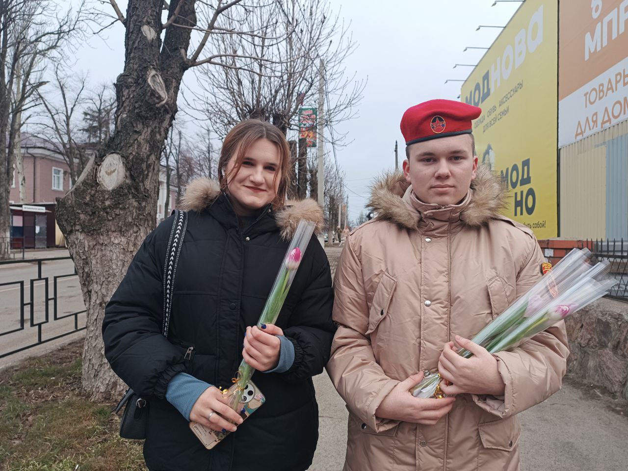 Женщины, идущие по своим делам, получили неожиданный, но такой приятный сюрприз. Юнармейцы дарили цветы и искренние поздравления, желая крепкого здоровья, семейного благополучия, весеннего настроения и мирного неба над головой.
