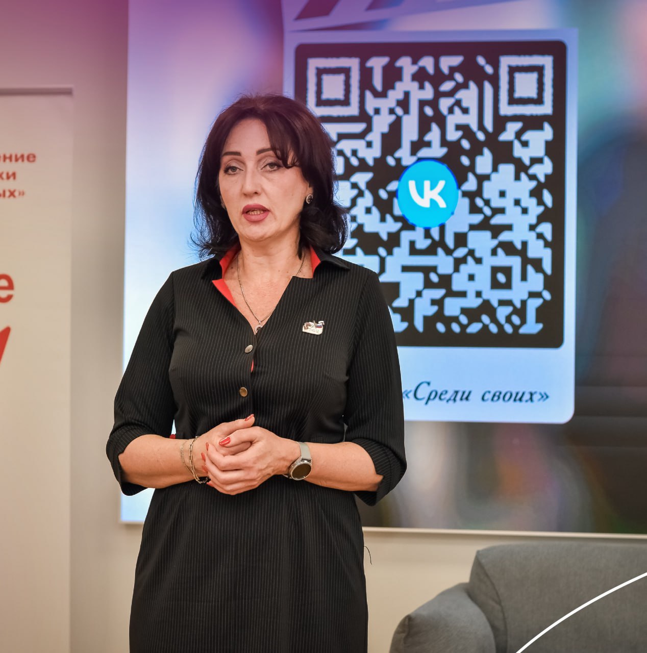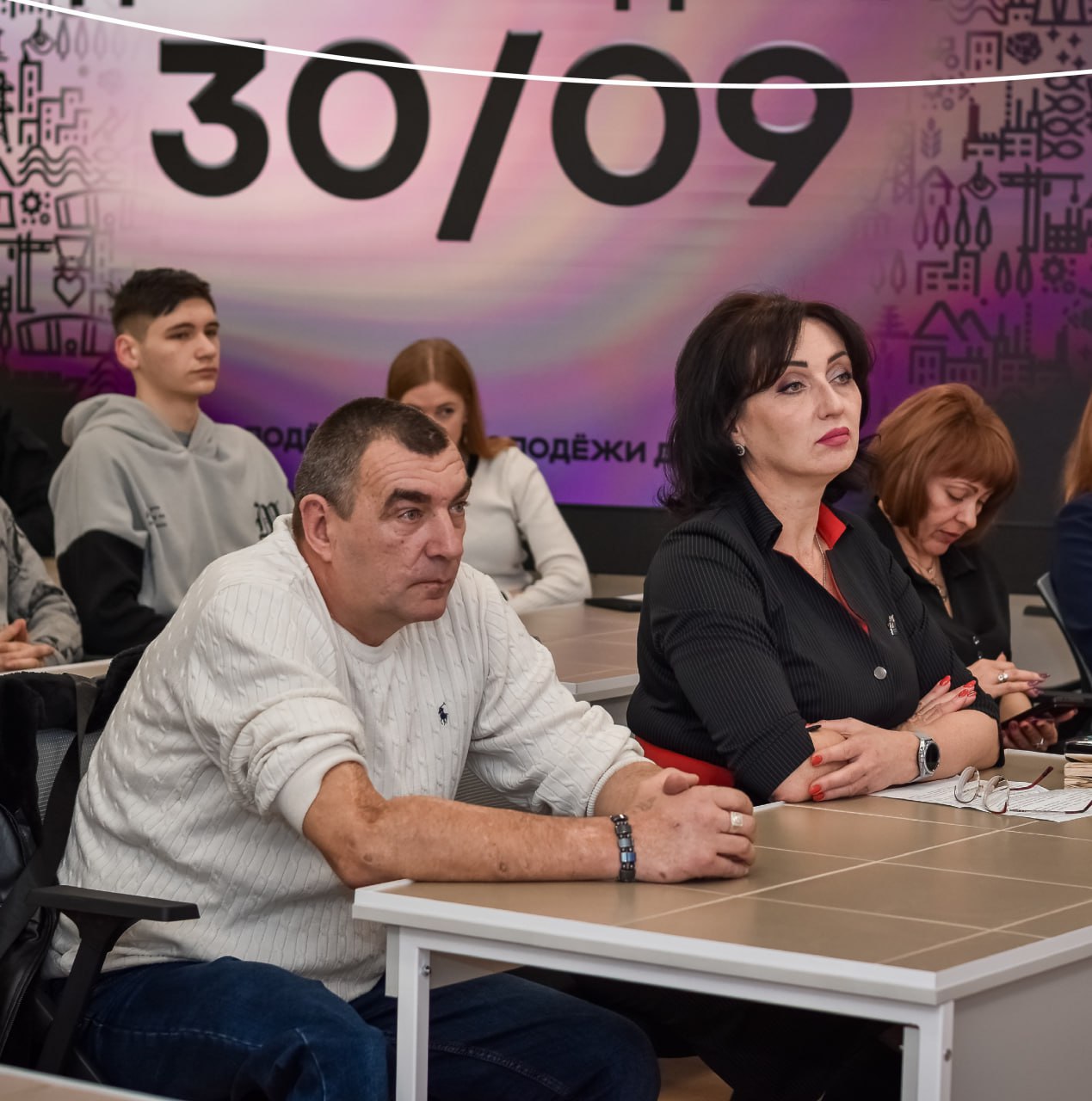 После показа перед молодыми людьми также выступила Марина Викторовна Соловарова — глава республиканского филиала фонда «Защитники Отечества». Помимо представителей медиахолдинга и фонда в зале присутствовали активисты молодёжных организаций и неравнодушная молодёжь Республики.