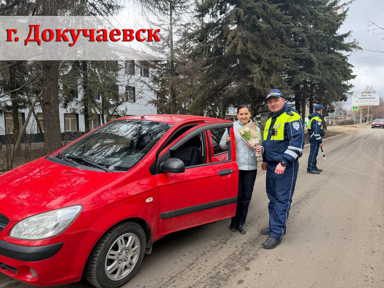 В ДНР сотрудники ГАИ останавливают автомобили и поздравляют женщин-водителей с Международным женским днём