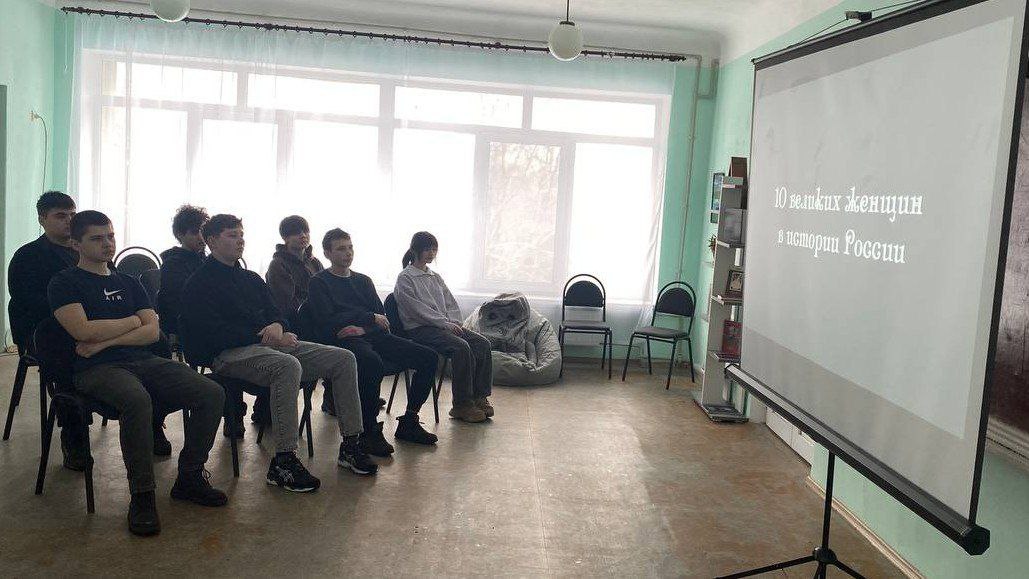 В ходе беседы посмотрели видеофильм, посвящённый выдающимся женщинам, чьи имена вписаны в историю России. Особое внимание было уделено героическим подвигам женщин, которые в разные эпохи мужественно отстаивали и продолжают защищать нашу Родину.