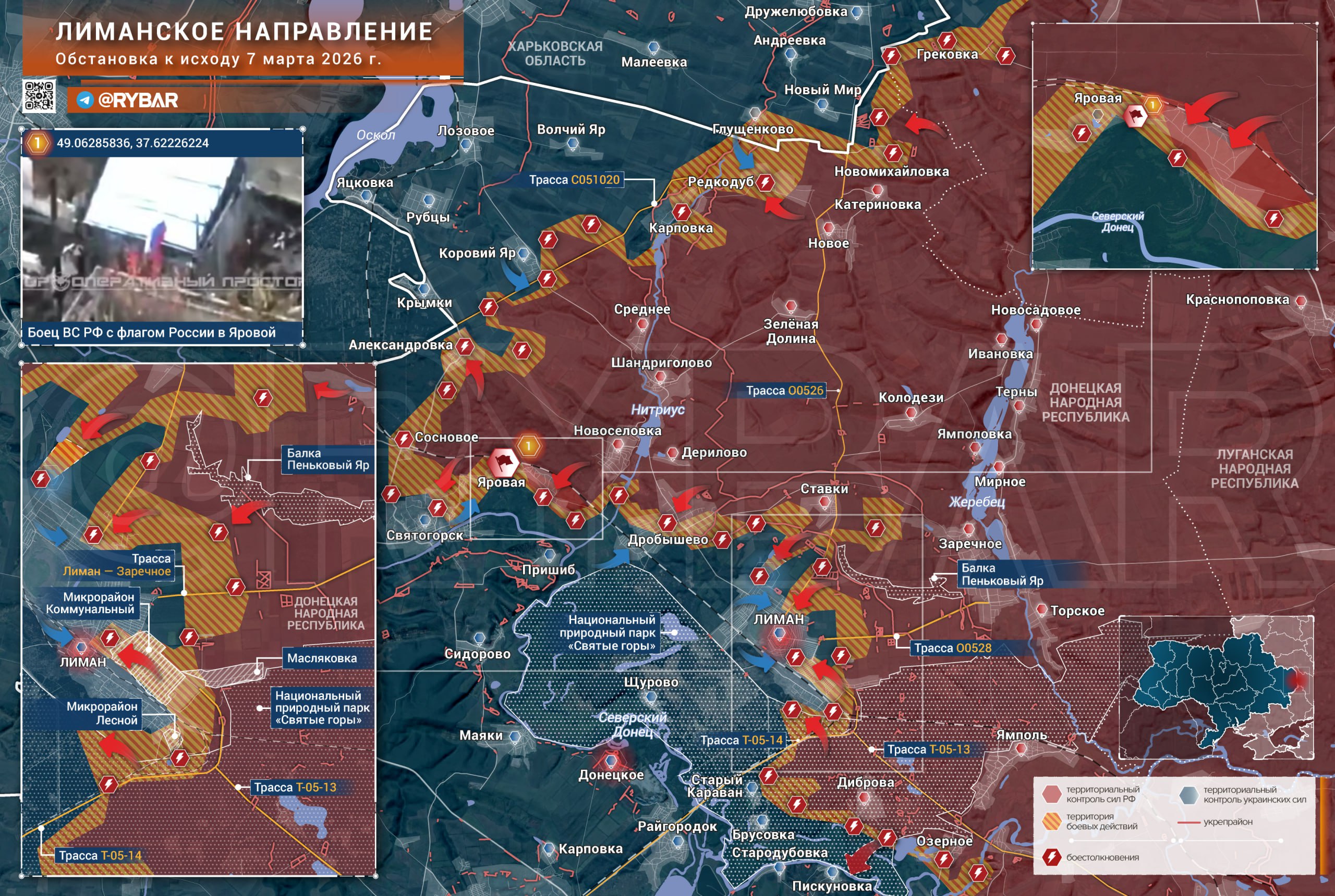 Встречные столкновения продолжаются и в Дробышево, а вот восточнее, со стороны Ставков, российские штурмовики прорубают путь через овраг к северным окраинам Лимана. На восточных и южных окраинах города тем временем продолжаются встречные бои малых групп. Полноценного контроля здесь достигнуть никому не удается, в силу высокой активности дронов.