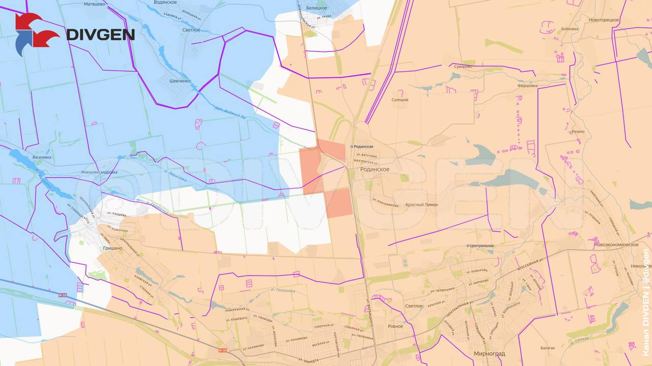 — продвижение западнее Родинского