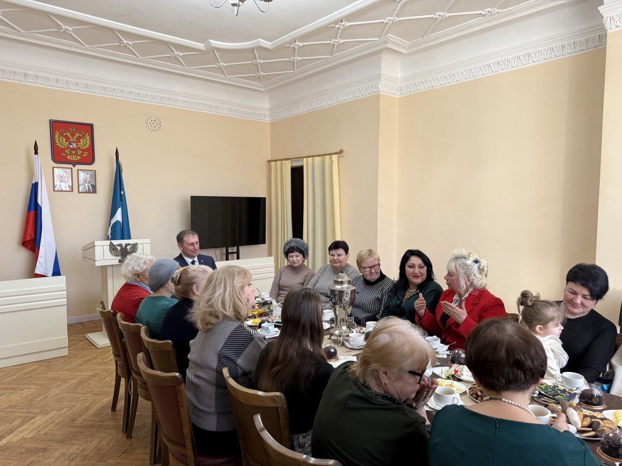 8 марта глава администрации Шахтерского муниципального округа, секретарь Шахтерского местного отделения партии «Единая Россия» Александр Шатов встретился с женами и матерями военнослужащих.