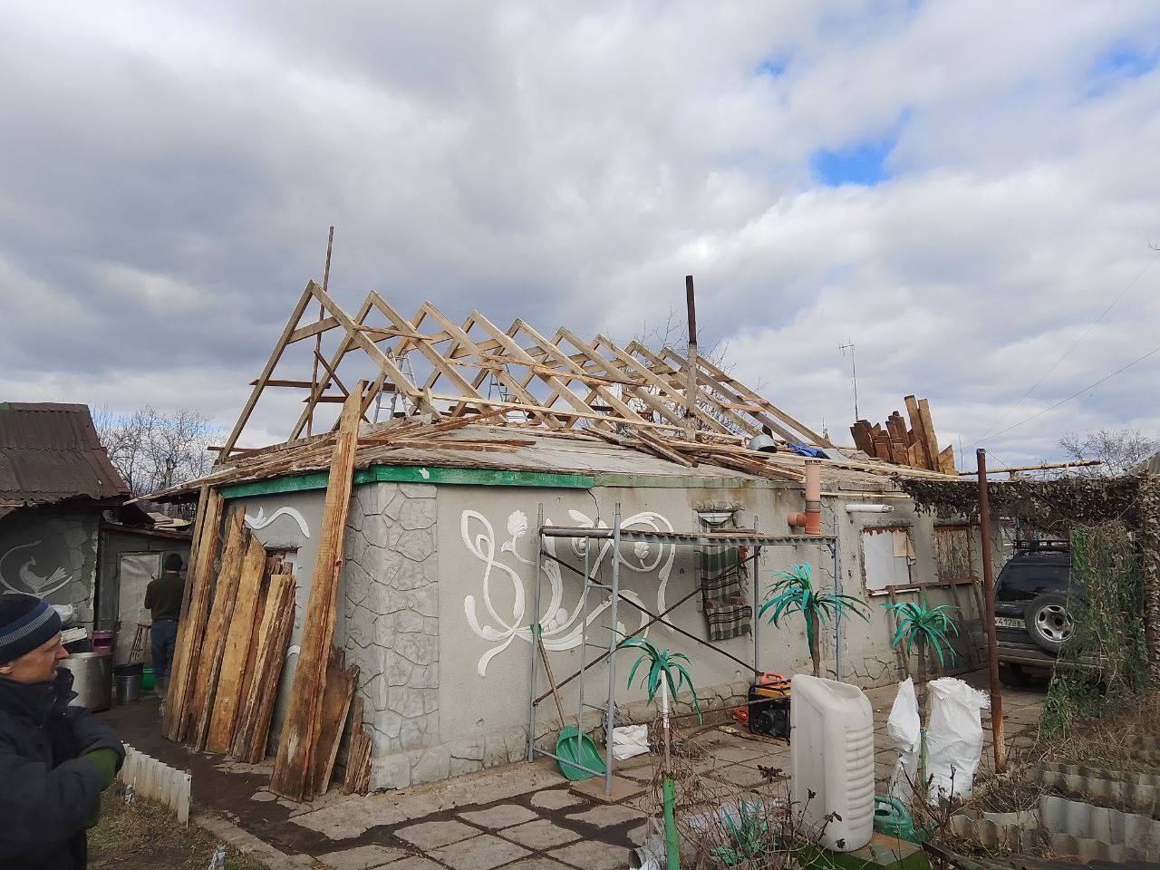 Этот дом пострадал в результате боевых действий, и вернуть ему безопасный вид стало общей задачей.