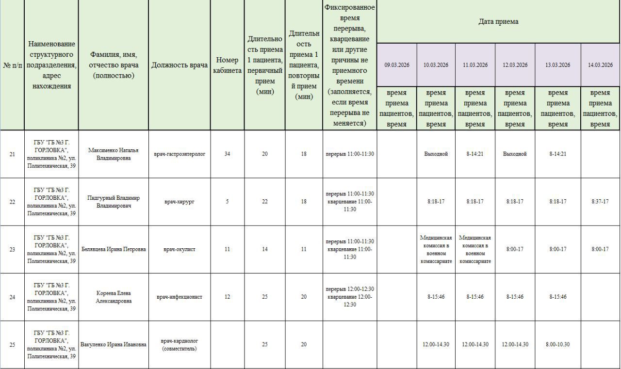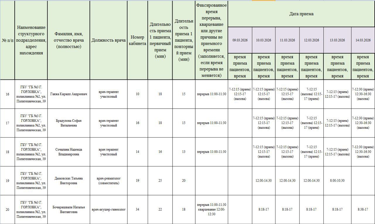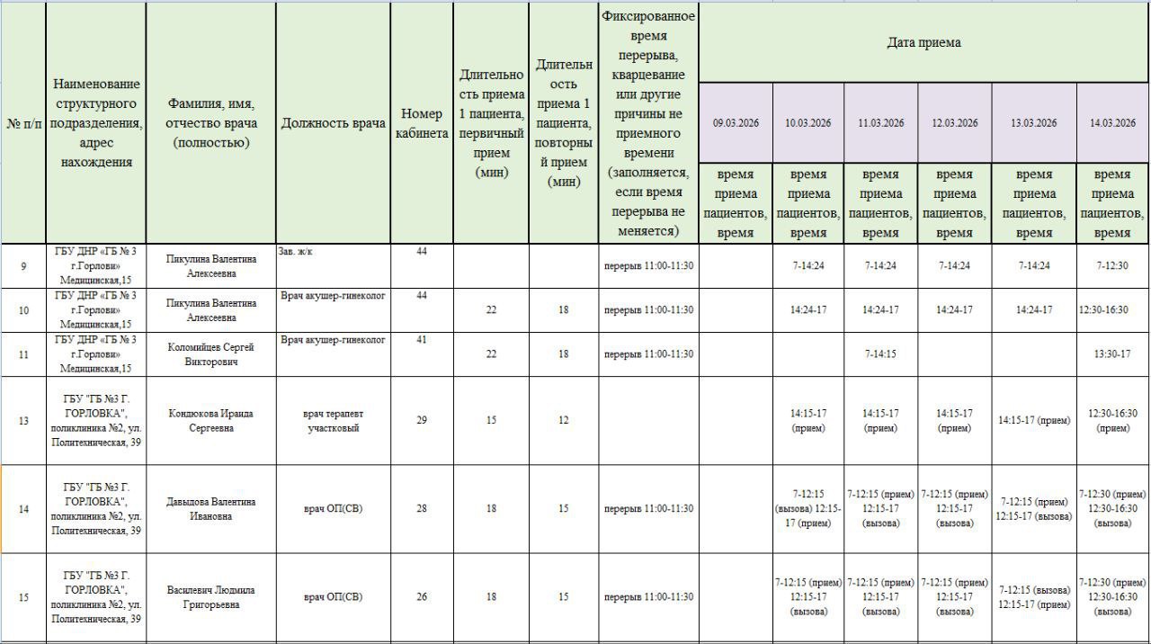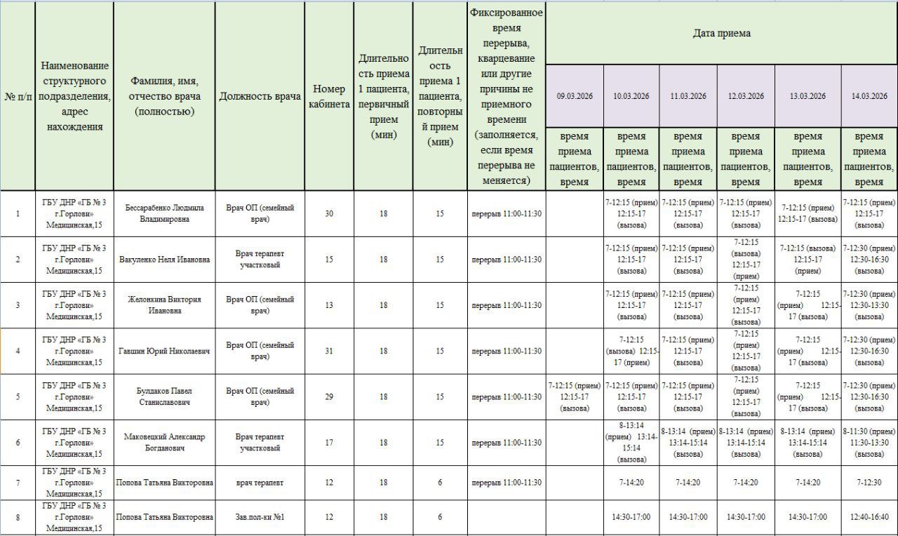Иван Приходько: График работы специалистов ГБУ ДНР «Городская больница № 3 г. Горловки»