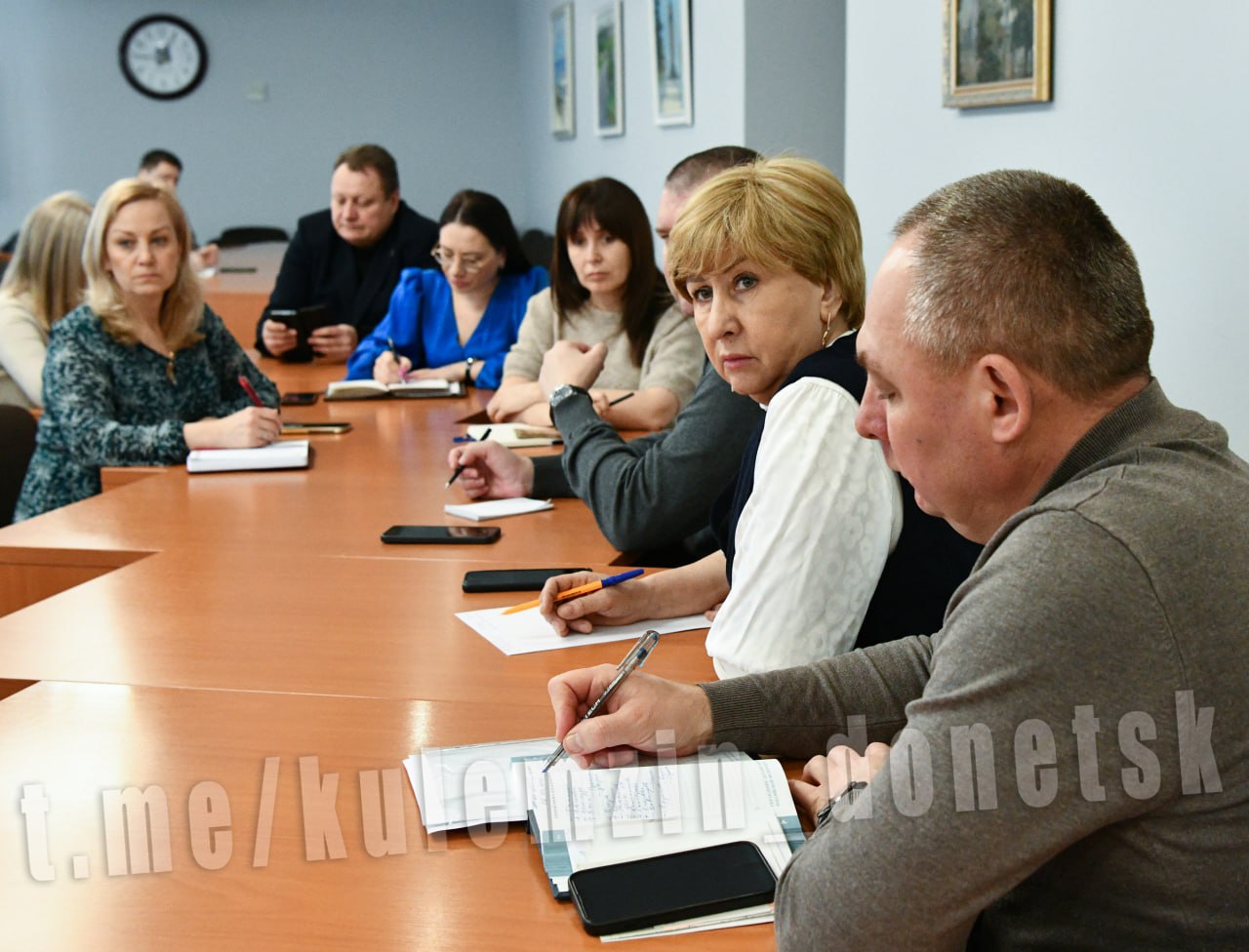Вместе с руководителем филиала фонда «Защитники Отечества» по ДНР Мариной Соловаровой провели встречу с руководителями управ внутригородских районов Донецка и социальными координаторами фонда.
