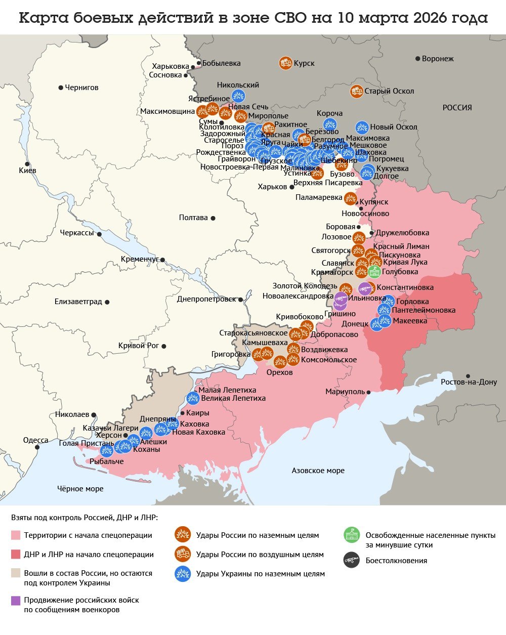 Карта боевых действий в зоне СВО на 10 марта 2026 года
