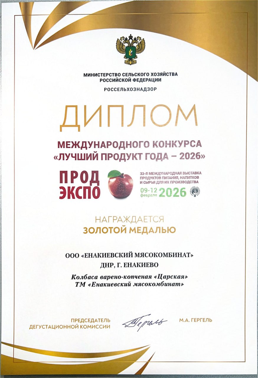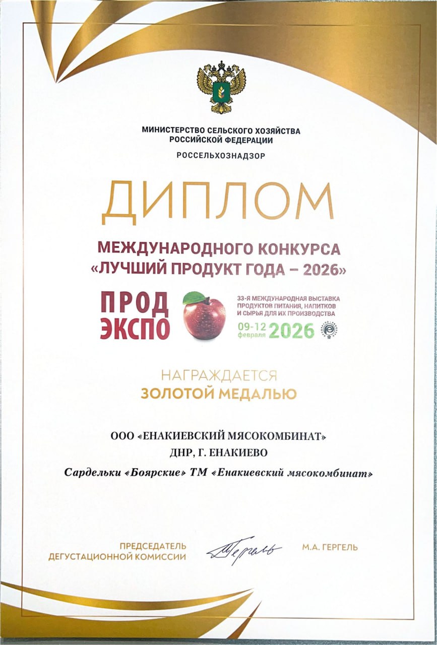 ООО «Енакиевский мясокомбинат» принял участие в 33-й международной выставке продуктов питания, напитков и сырья для их производства, где также состоялся престижный международный конкурс «Лучший продукт года — 2026».