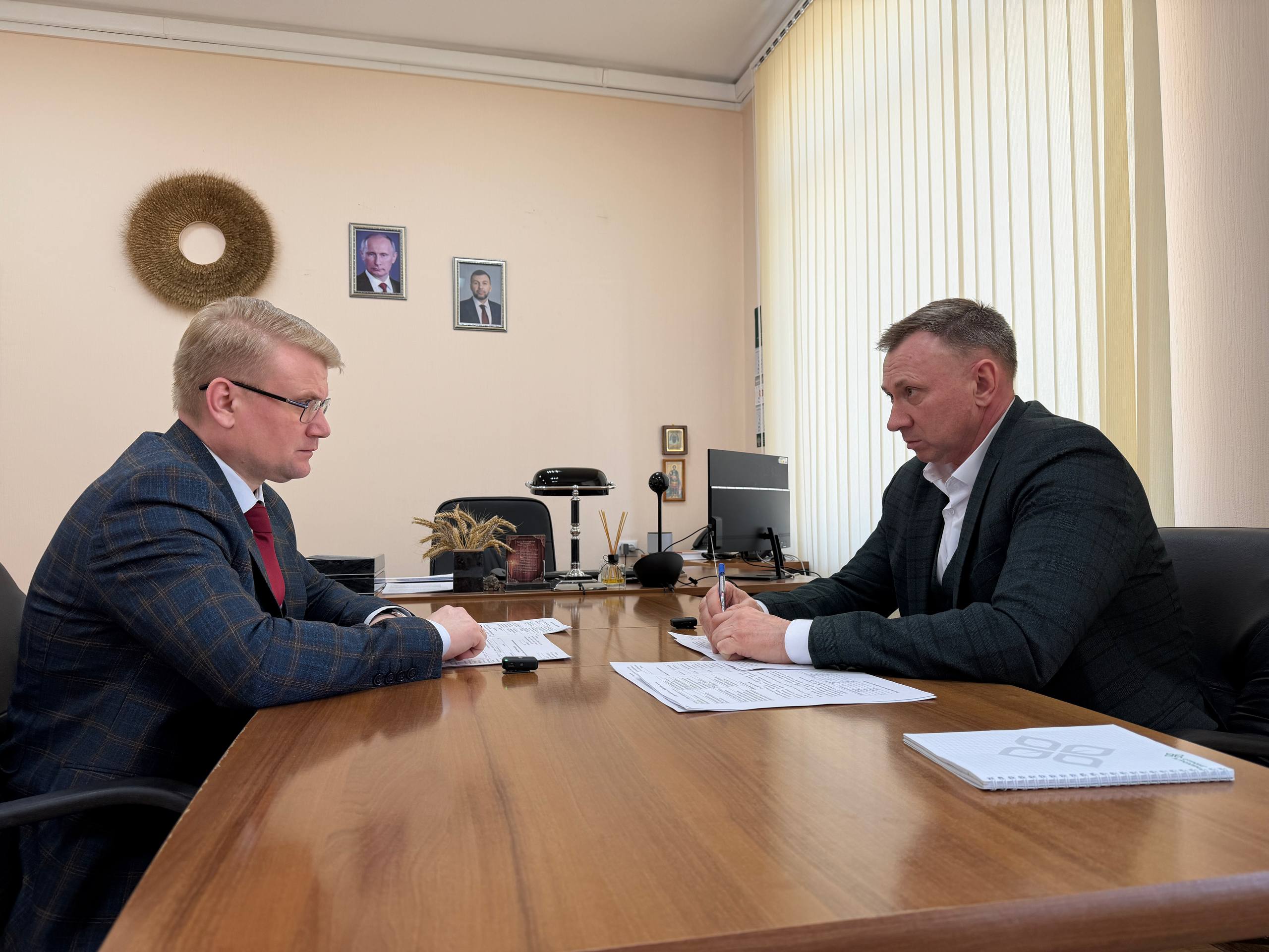 Заслушал доклад исполняющего обязанности руководителя ГУП ДНР «Аграрный Донбасс» Александра Ермоленко о ходе стабилизационных мероприятий на молочно-товарном комплексе «Новоазовск» и дальнейших планах развития предприятия.