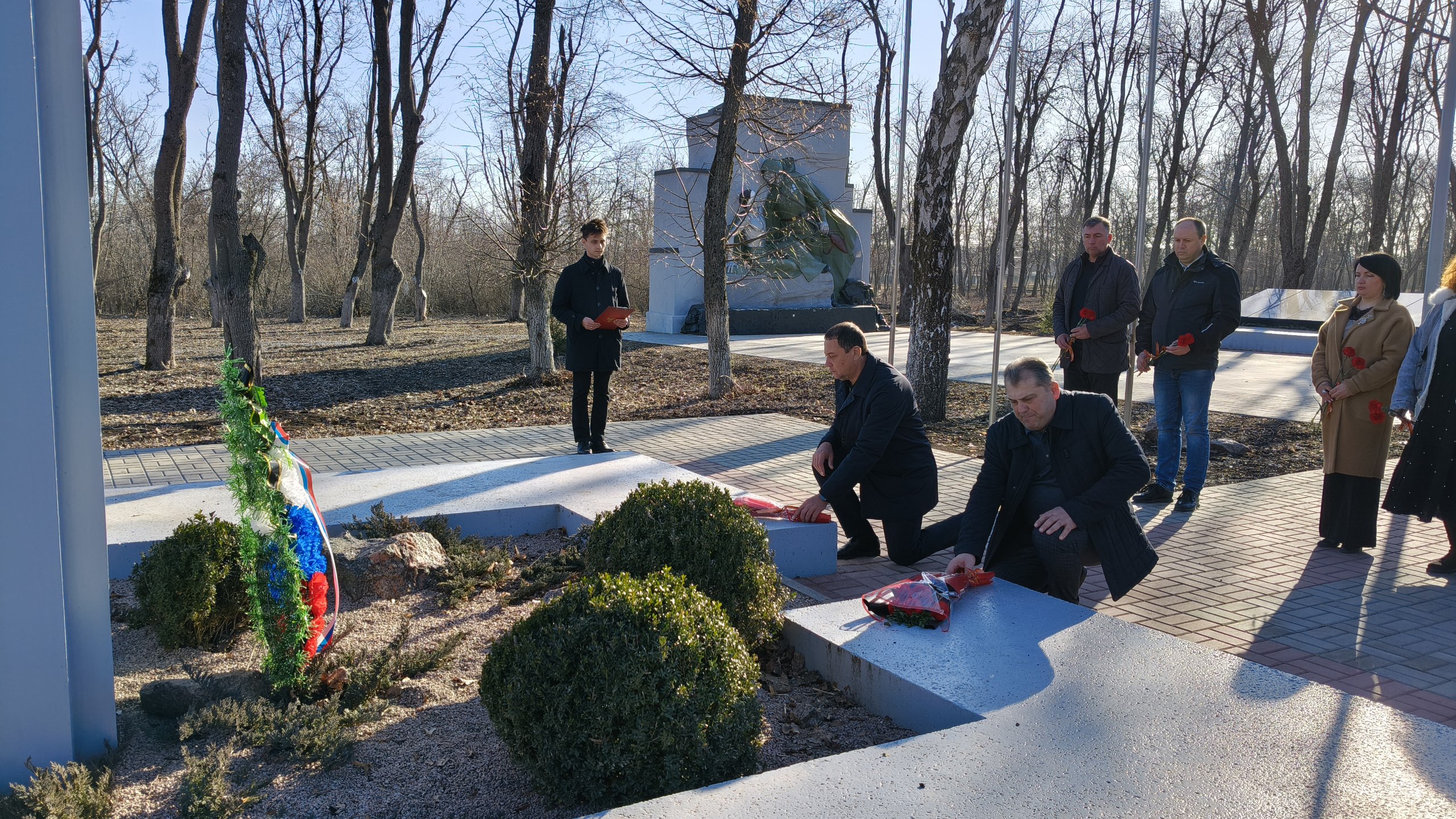 Возложили цветы к памятникам Героям специальной военной операции и 3-му отдельному стрелковому батальону территориальной обороны имени 383-й Шахтерской дивизии.