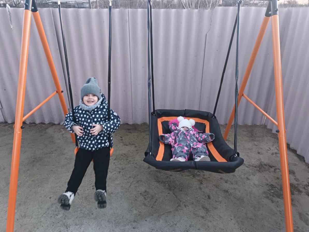 Сотрудники департамента имущественных отношений ЯНАО подарили уличные качели многодетной семье из Волновахи