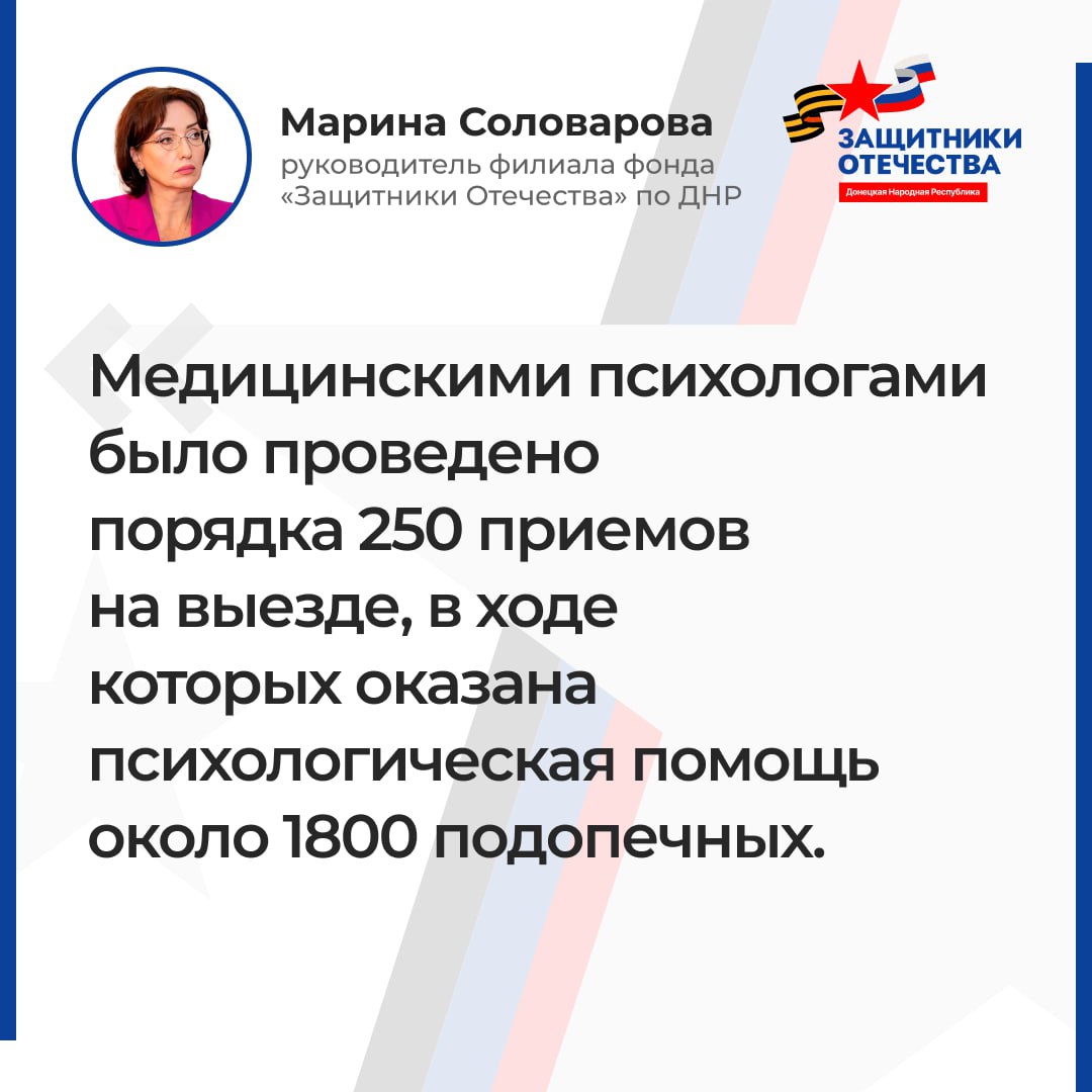 В ходе прямого эфира руководитель филиала фонда «Защитники Отечества» Марина Соловарова рассказала о психолого-психотерапевтической помощи, оказываемой адресатам филиала.