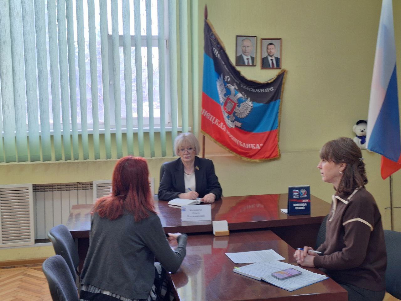 12 марта председатель Шахтерского муниципального совета ДНР Ольга Катанцева провела прием граждан в местной общественной приемной Шахтерского местного отделения партии «Единая Россия».