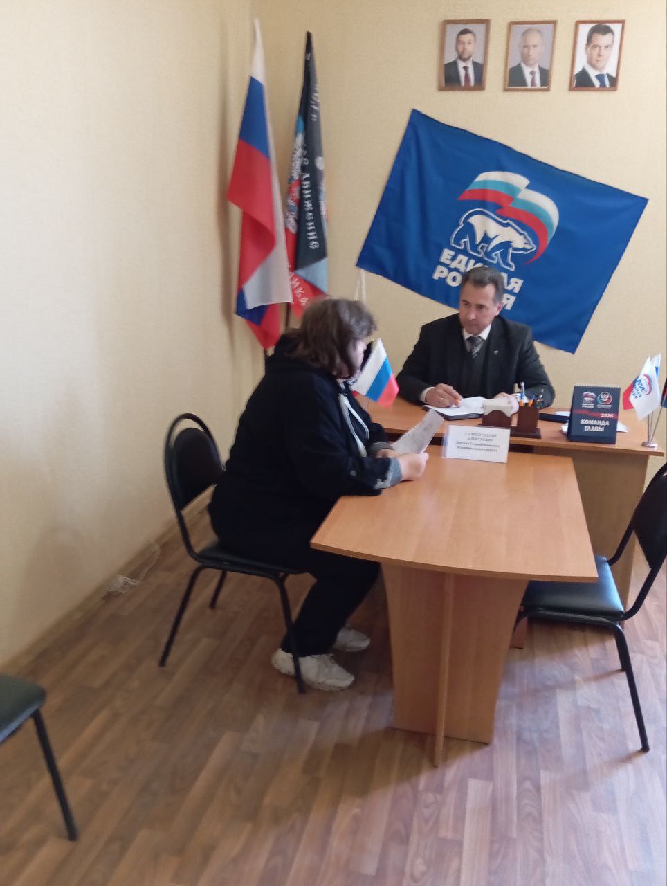 12 марта Депутат Старобешевского муниципального совета Сергей Салиев провел личный приём граждан в общественной приёмной Партии "ЕДИНАЯ РОССИЯ" Старобешевского муниципального округа.