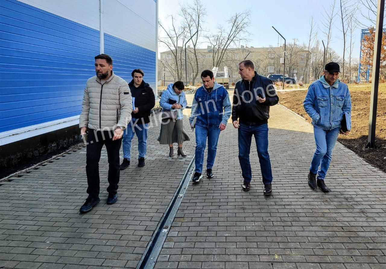 Заместитель главы администрации г.о. Донецк провел выездное совещание в Ворошиловском районе на стройплощадке будущего спортивного зала по настольному теннису.