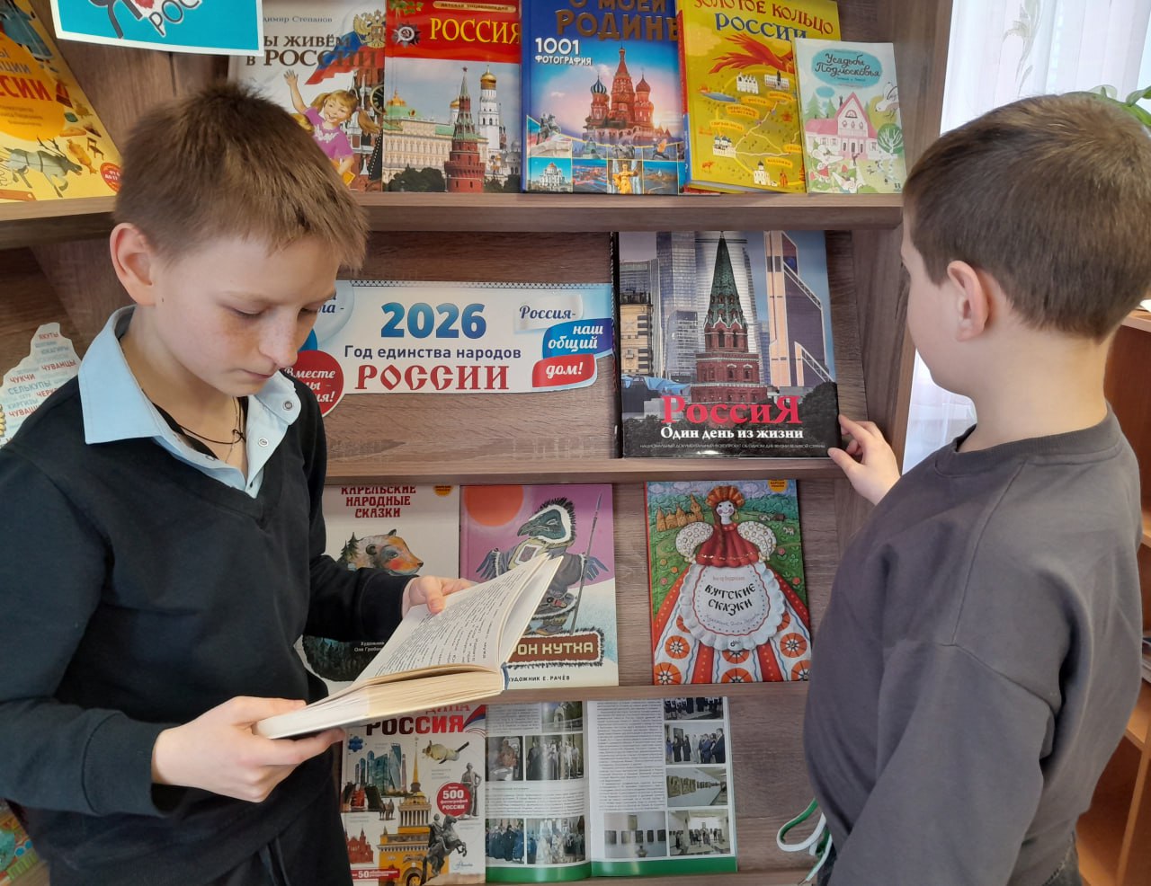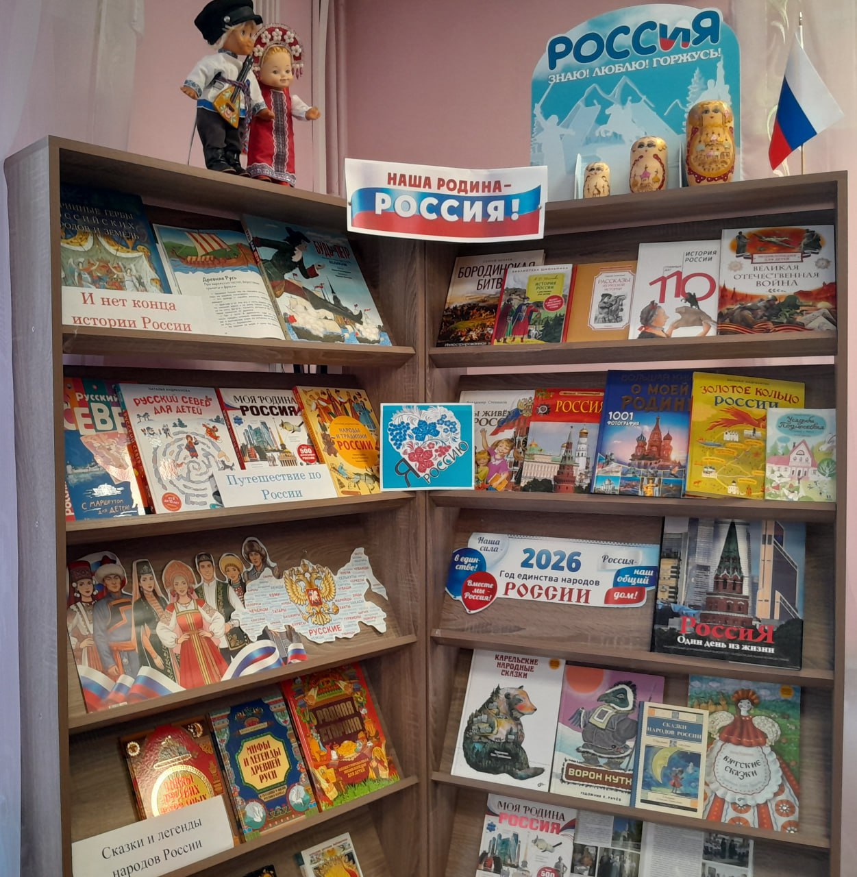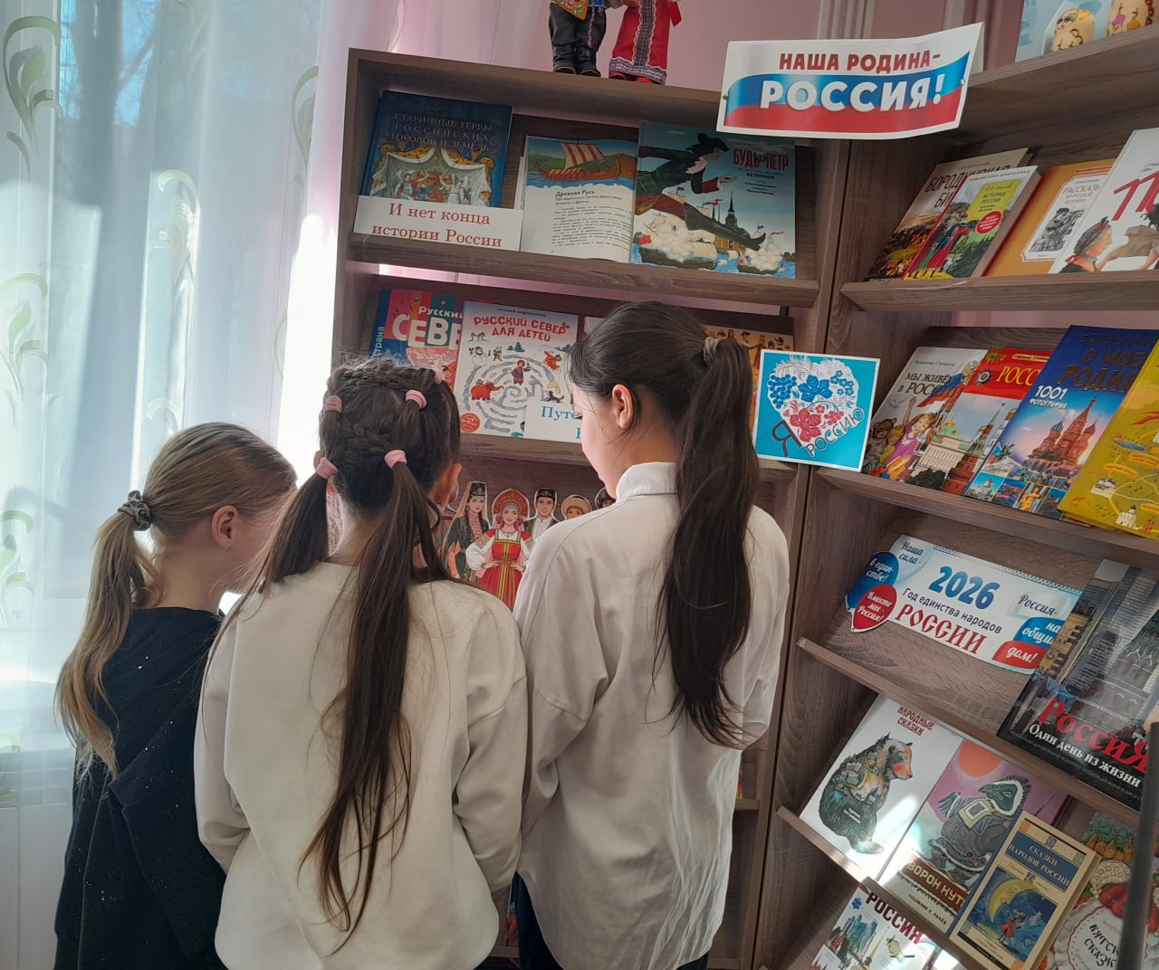 2026 год в нашей стране объявлен Годом единства народов России. В рамках этого события в детской библиотеке-филиале была оформлена выставка литературы «Наша Родина - Россия». На выставке представлены книги по истории объединения Российского государства, о выдающихся исторических личностях, литература о народах, проживающих на территории России, а также художественная литература народов России.