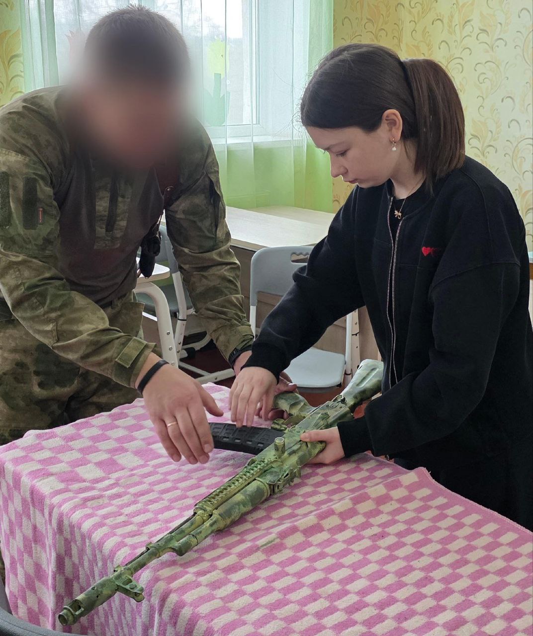 Школьники получили возможность лично ознакомиться с основными частями и механизмами стрелкового оружия. Особое внимание было уделено учебному автомату, что позволило старшеклассникам поэтапно отработать неполную разборку и последующую сборку. Обучающиеся разобрали автомат, изучили назначение каждой детали, а затем, следуя установленной последовательности, собрали его обратно.