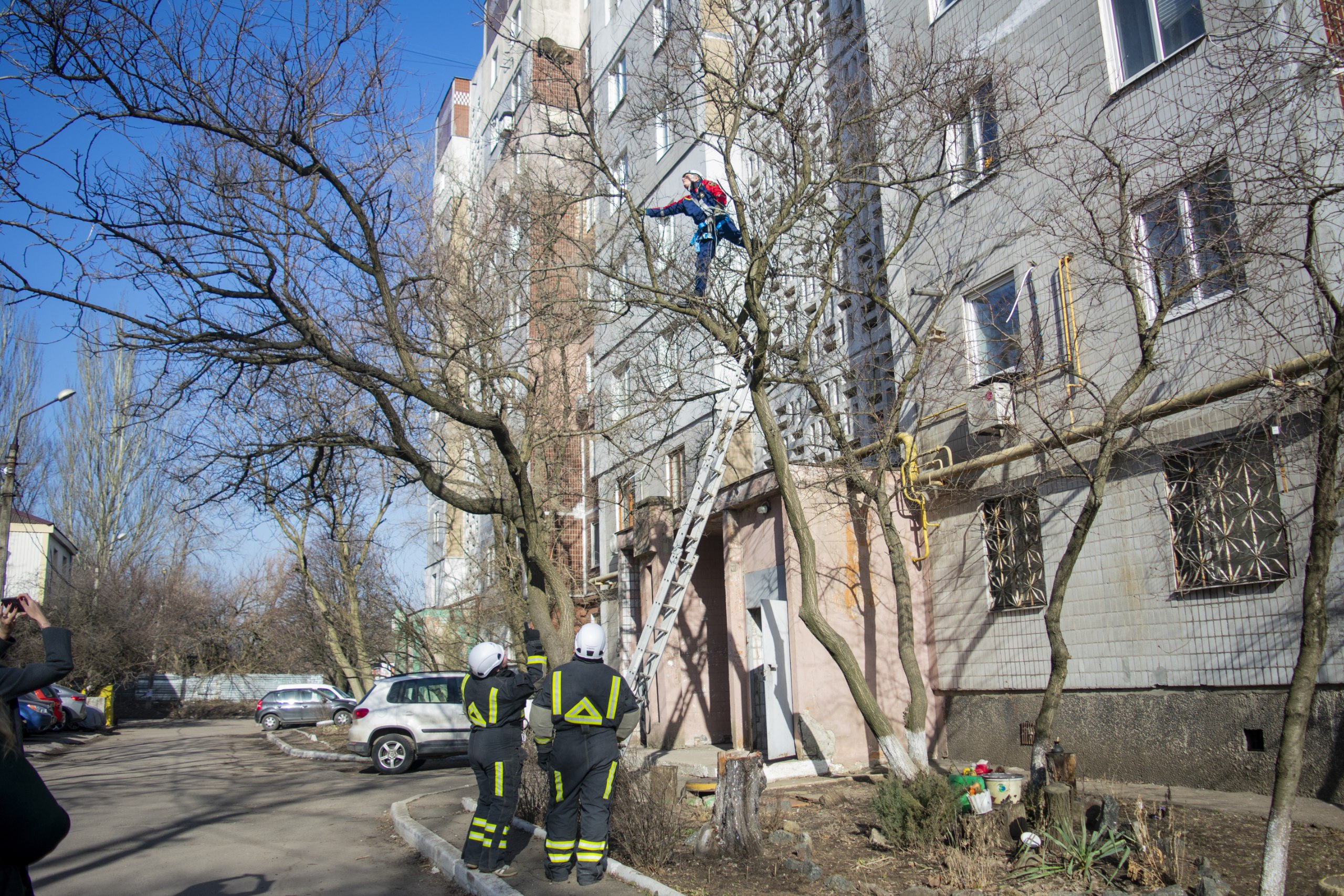 Добровольцы Донецкого РО ВСКС спасли кота, застрявшего на дереве