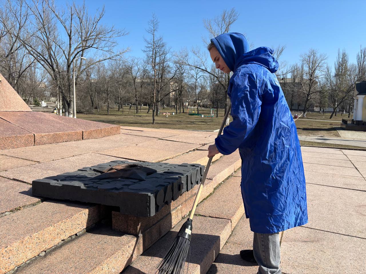 В рамках акции #ЭкоМарафон волонтёры навели порядок на одном из памятных мест города.