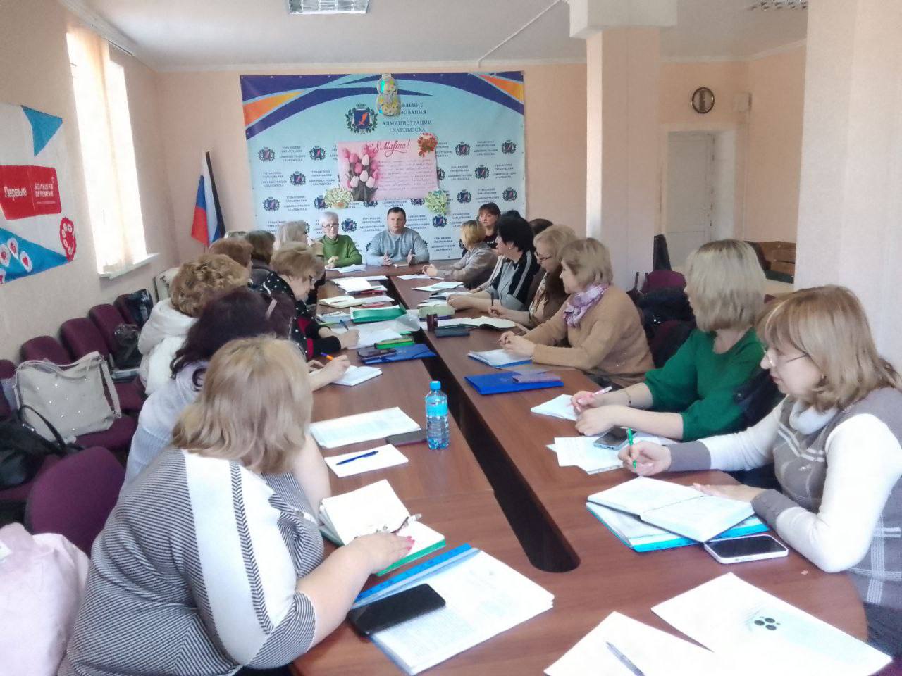 Начальник Управления образования Администрации городского округа Харцызск Николай Осипов провел встречу с трудовым коллективом Управления образования.