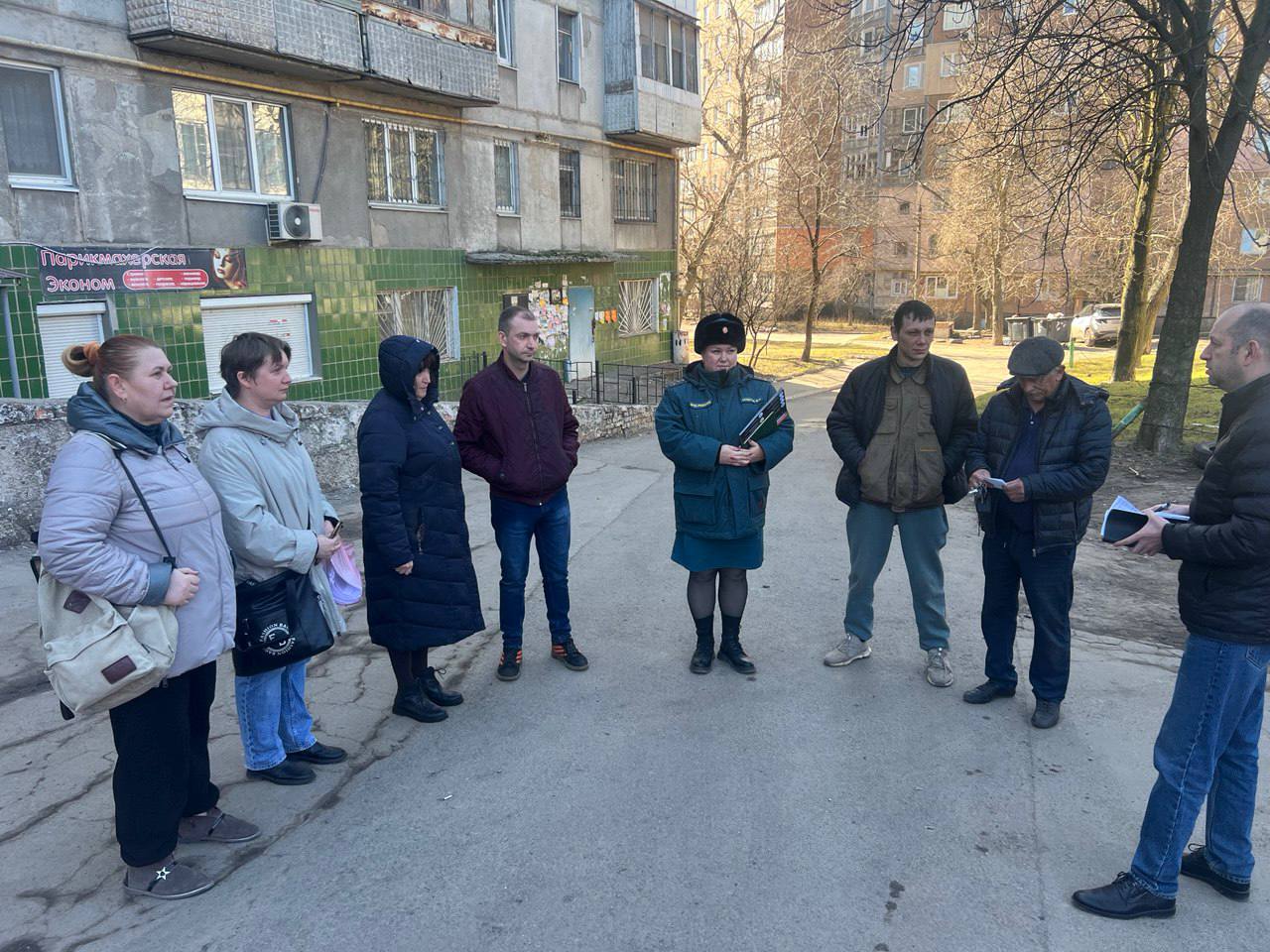 По поручению Главы ДНР Дениса Пушилина 13.03.2026 по адресу: г.Донецк,ул. Куйбышева, 43 состоялась встреча с жителями района, на которой присутствовали заместитель руководителя Управы Ленинского внутригородского района Анатолий Разумов, старший дознаватель отделения НД и ПР Ленинского района г. Донецка МЧС России по ДНР Марина Скудрова.