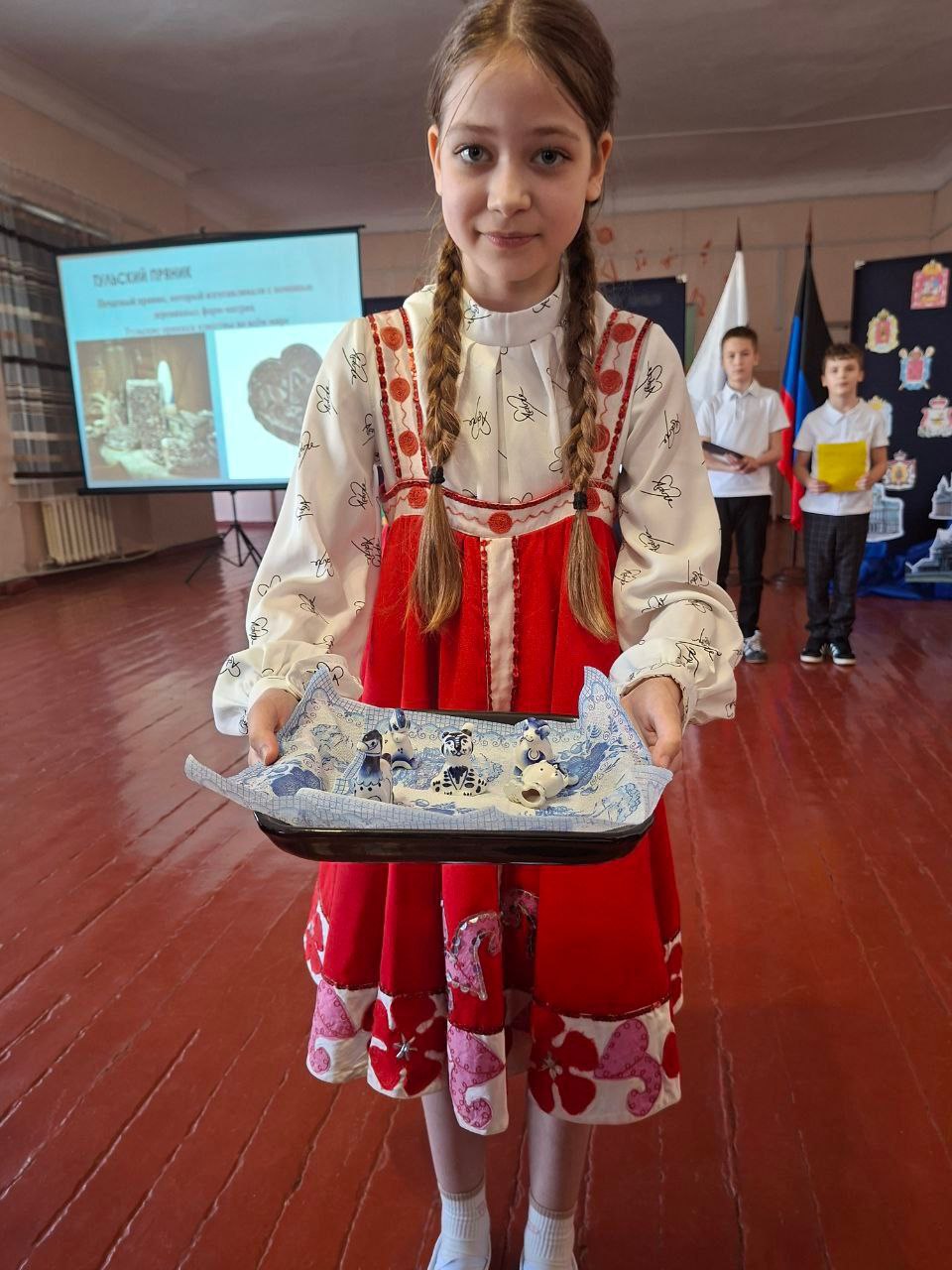 • 5 класс не только рассказали о культурных традициях Центрального округа, но и показали, как выглядит гжель, хохлома, угостили тульскими пряниками и белёвской пастилой.