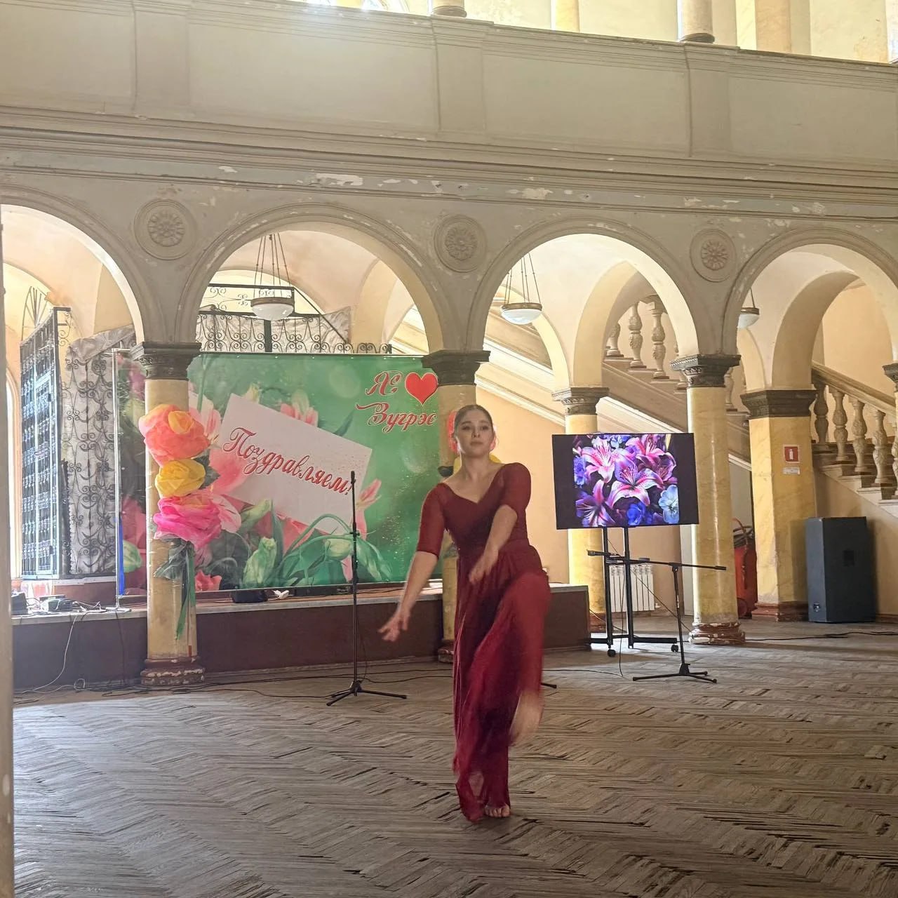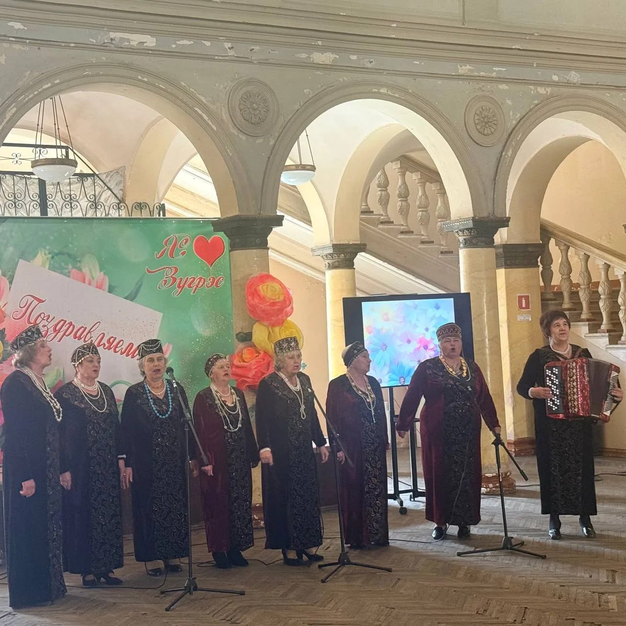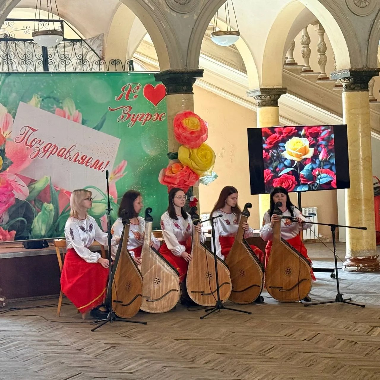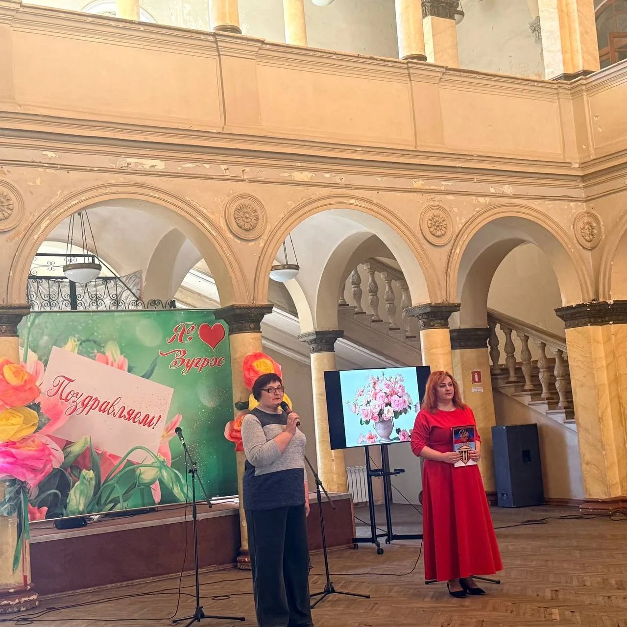 С поздравлением и благодарностью за нелегкий труд выступила директор ДК- Татьяна Владимировна Денисова. Множество стихов и добрых пожеланий прозвучало со сцены, сменяясь музыкальными подарками. Свое творчество гостям дарили: образцовый ансамбль бандуристов "Надежда", народный вокальный коллектив "Калинка", детский танцевальный коллектив "Бархат", молодежный клуб современного танца "ОРИОН", дуэт "Валькирия" и Антонина Ермакова.