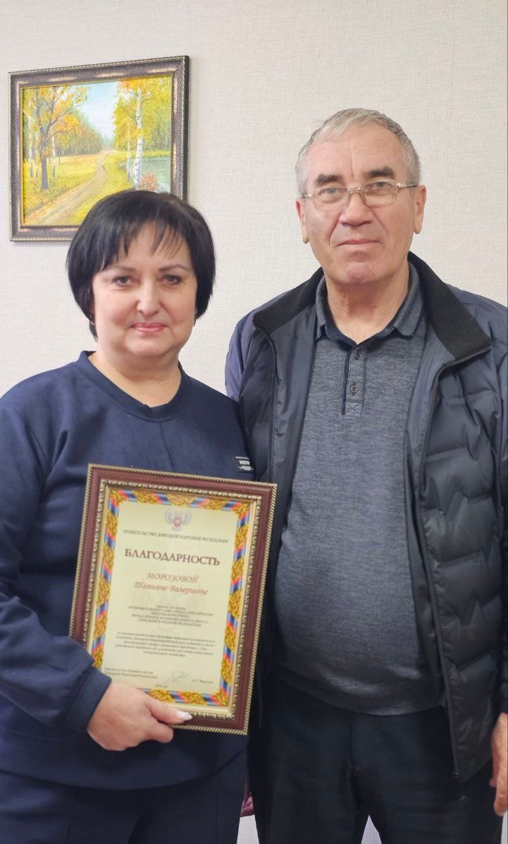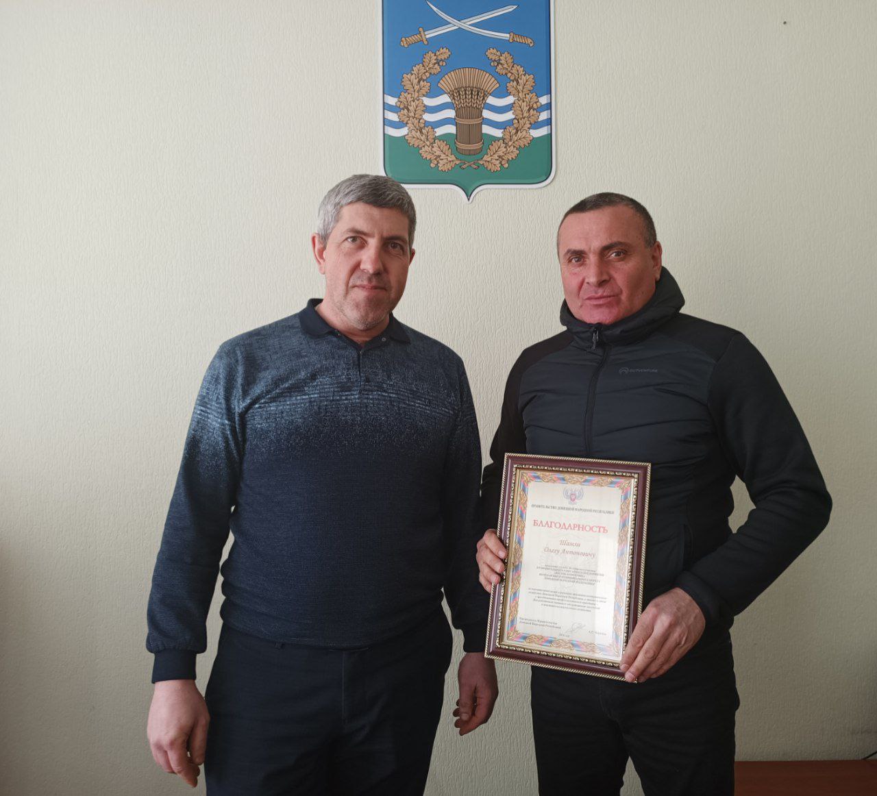 Первый заместитель главы Администрации Д.В. Боровик выполнил почетную миссию и вручил Благодарности Главы Донецкой Народной Республики и Благодарности Правительства Донецкой Народной Республики за значительный вклад в развитие жилищно-коммунального хозяйства лучшим представителям отрасли.