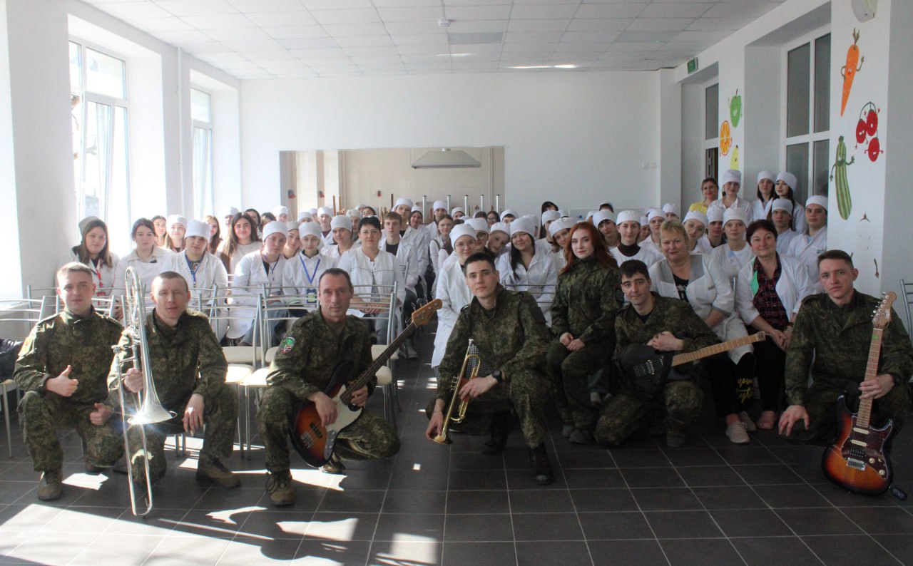 Для студентов Мариупольского медицинского колледжа сегодня выступал Вокально-инструментальный ансамбль "МОНУ" 29 Гвардейской общевойсковой армии 200 Гвардейской артиллерийской бригады Восточного военного округа Вооруженных Сил РФ.