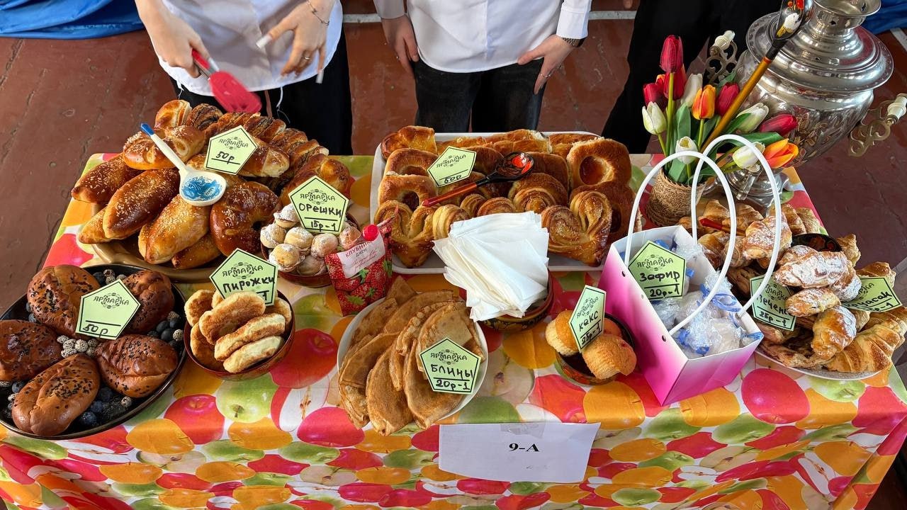 На столах, оформленных в стиле русской ярмарки, красовалась румяная выпечка, которую дети готовили дома вместе с родителями: плюшки, пироги, вафли, блины, трубочки и другие угощения. Чтобы участники не заскучали, их веселили Медведь, Петрушка, цыганки и другие ряженые.