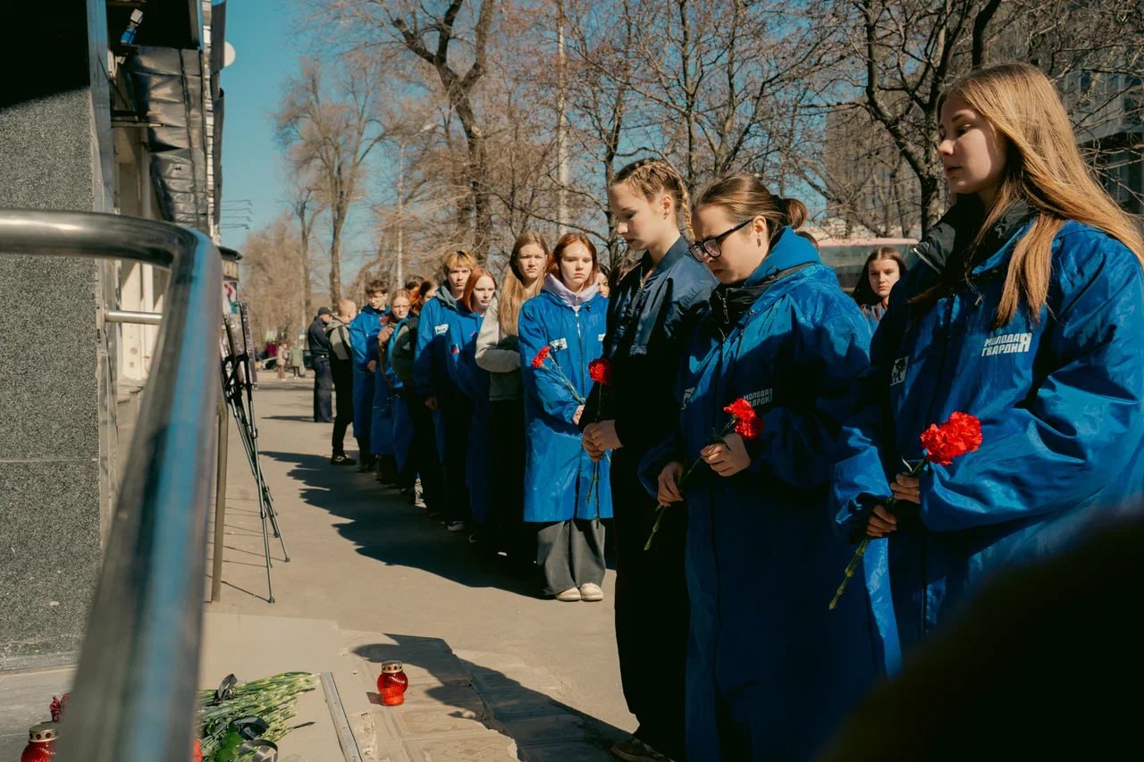В память о погибших активисты «Молодой Гвардии» ДНР возложили цветы к месту, где произошла трагедия.
