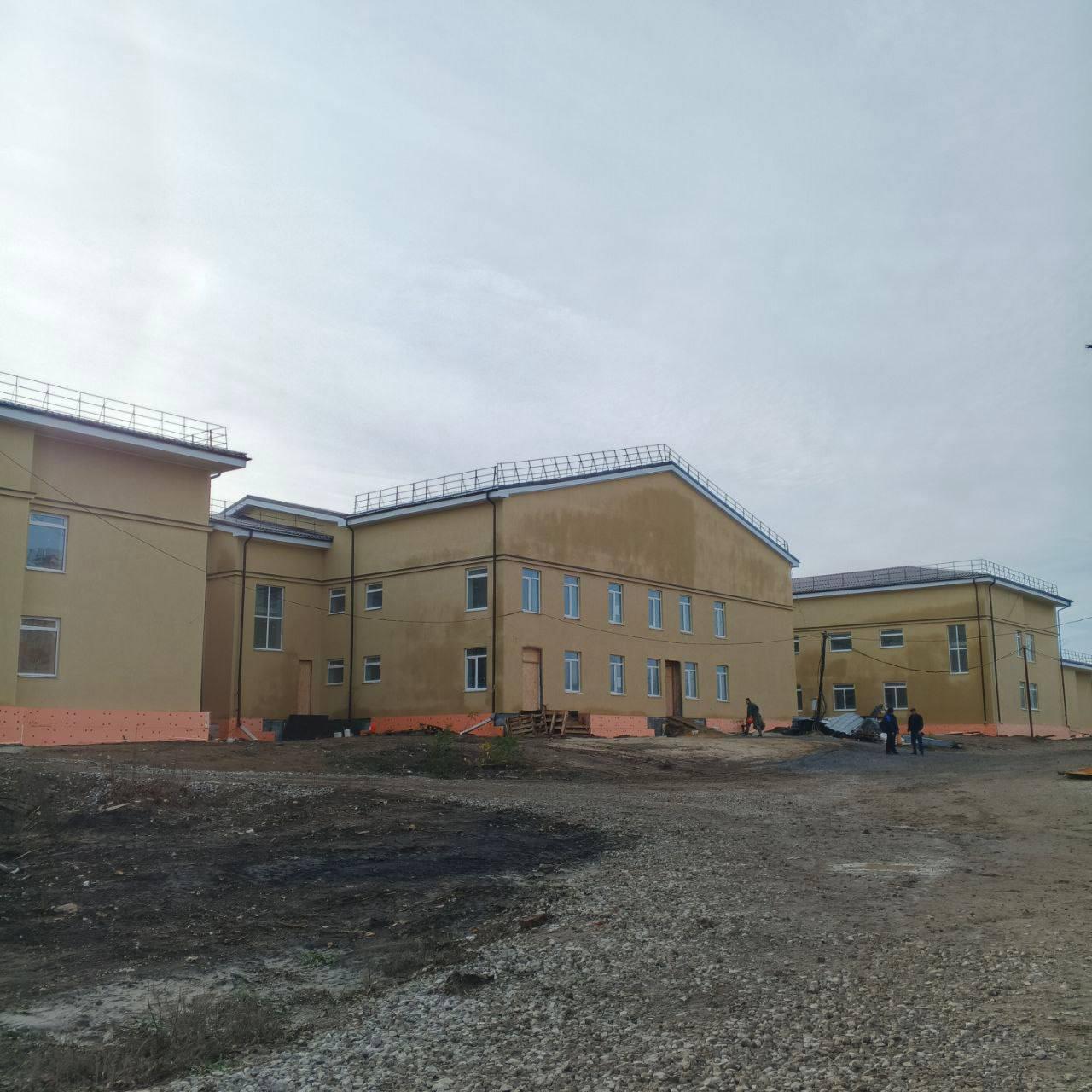 В корпусах центра продолжаются работы по внутренней отделке помещений: окраска, установка освещения, укладка плитки.