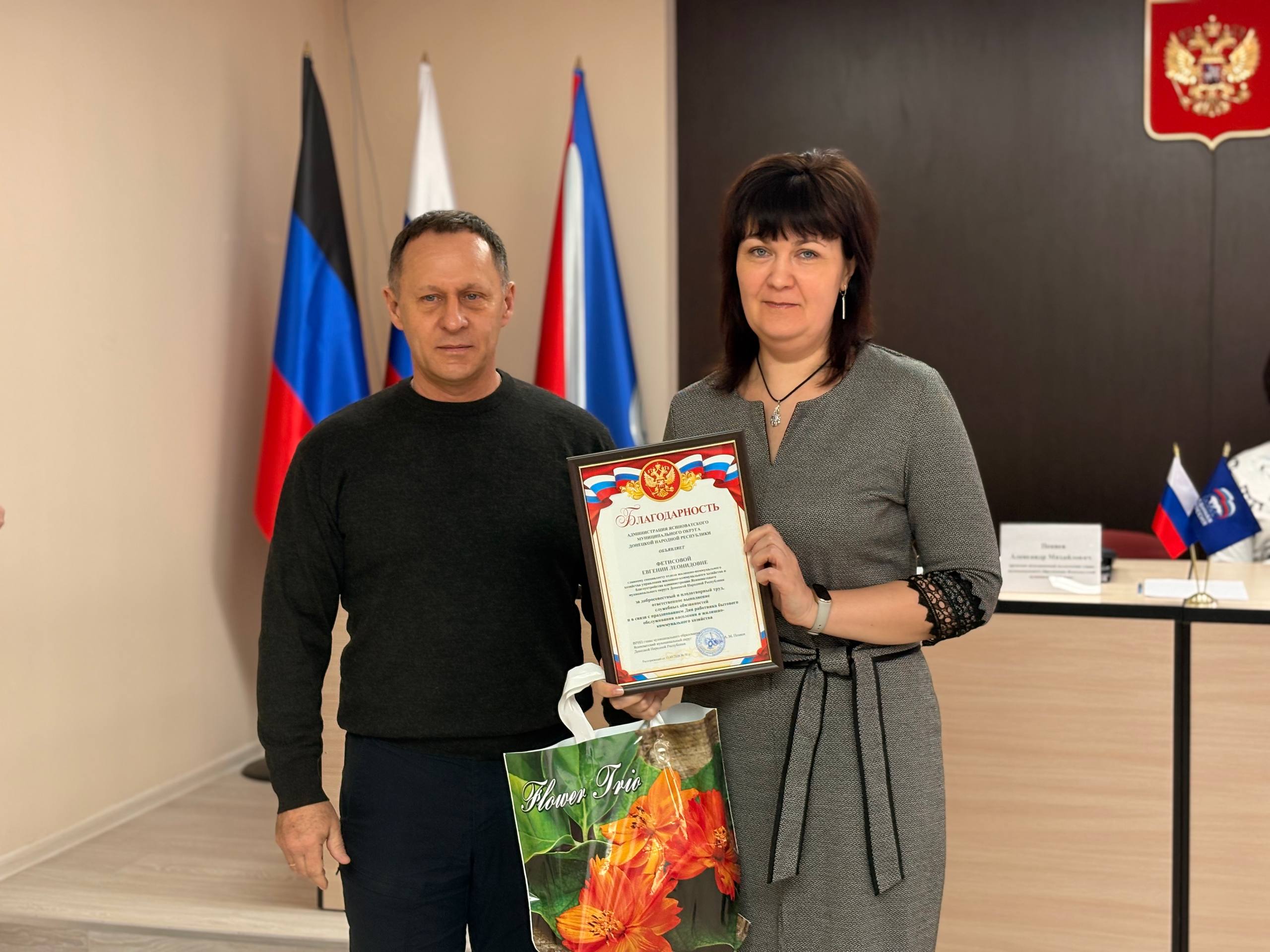 В честь Дня работника жилищно-коммунального хозяйства временно исполняющий полномочия секретаря местного отделения партии «ЕДИНАЯ РОССИЯ» Александр Пеняев вместе с депутатами Ясиноватского муниципального совета выразил благодарность сотрудникам коммунальной сферы округа.